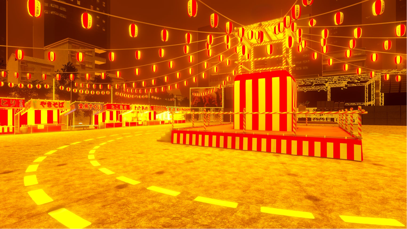 “VRおしゃれ盆踊り“では“おしゃれ盆踊り“と同様に野宮真喜様がご提供する「東京は夜の七時~盆踊りver」に乗せてVRを楽しむ皆様が盆踊りをお楽しみ頂けます。