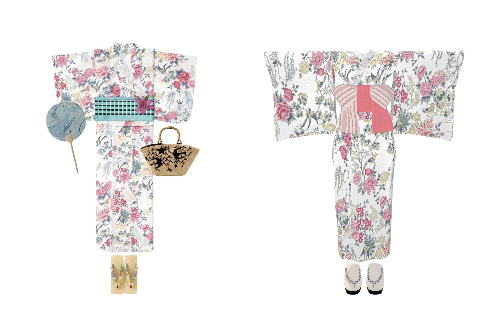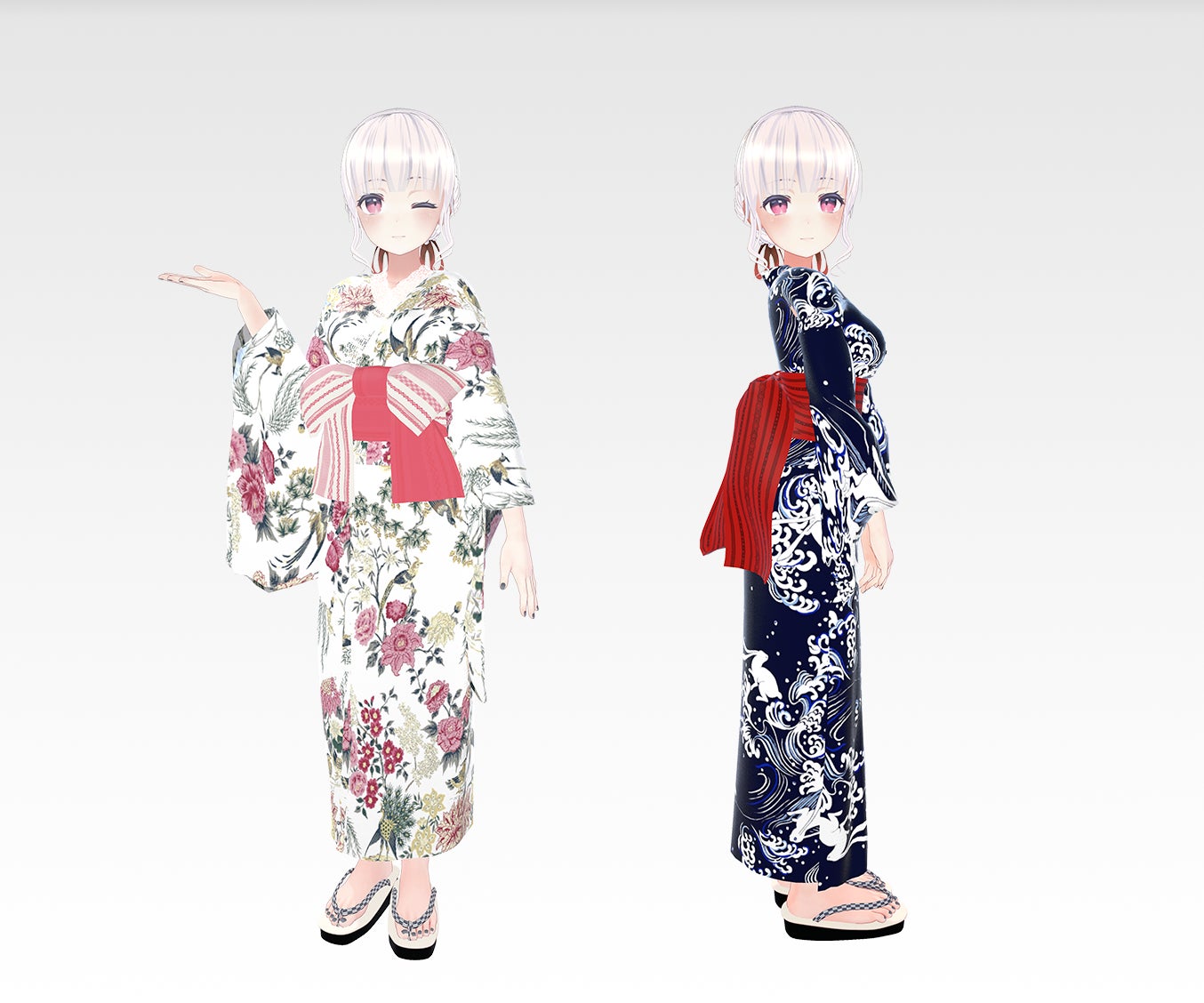 実際に販売している浴衣に3Dモデルデザインの帯をセットでご提供。