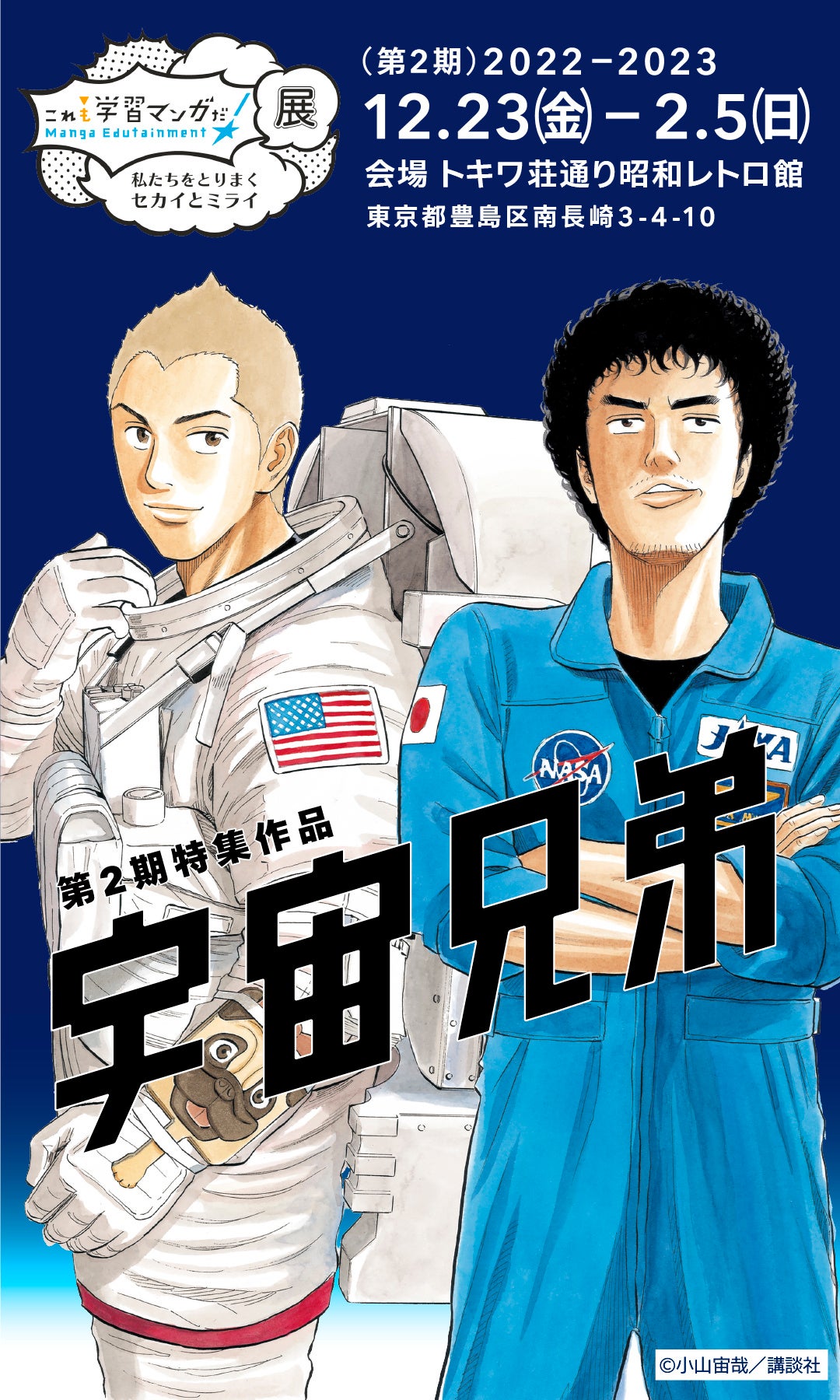「トキワ荘通り昭和レトロ館(豊島区立昭和歴史文化記念館)」で開催中の「これも学習マンガだ!展〜私たちをとりまくセカイとミライ〜」の第2期特集作品が『宇宙兄弟』(作:小山宙哉)に決定しました。作品展示は令和4年12月23日(金)から令和5年2月5日までとなります。また、トキワ荘のあったまち南長崎を回遊するイベント「街歩きクイズラリー~トキワ荘の記憶~マンガを学ぶってどういうこと?」を同時開催します。