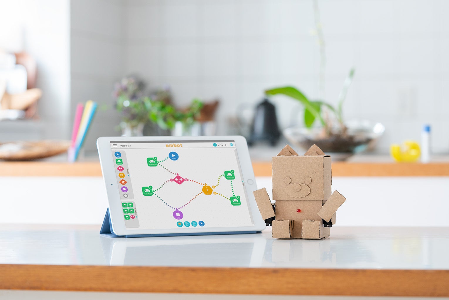 - ※1: 「embot」とは、ダンボールなど身近なものと電子工作パーツとアプリを用いて作る、プログラミング教育ロボットのことで、プログラミング教育の場で広く使われています