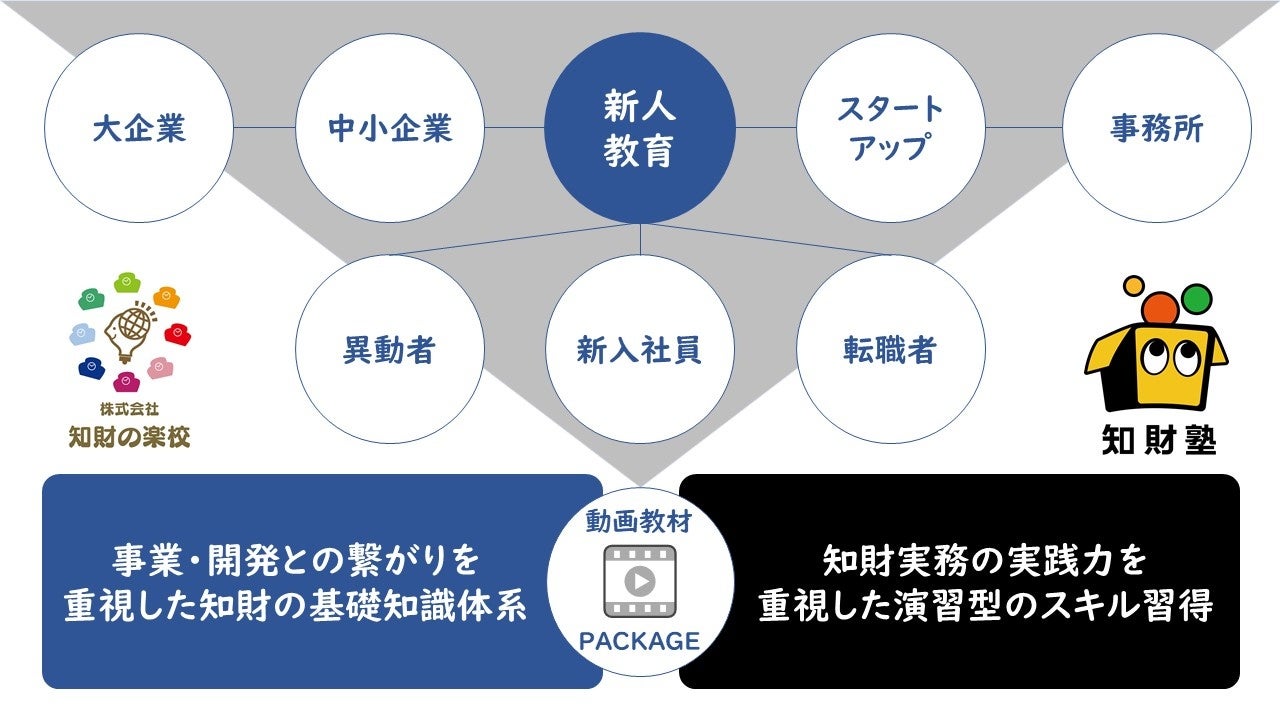 知財人材教育の支援を事業とする株式会社知財の楽校(代表取締役:玉利泰成)と株式会社知財塾(代表取締役:上池睦)が、両者の強みを持ち寄ったパッケージコンテンツとして、知財人材の新人向け教育プログラムを2022年04月01日にリリース致します。