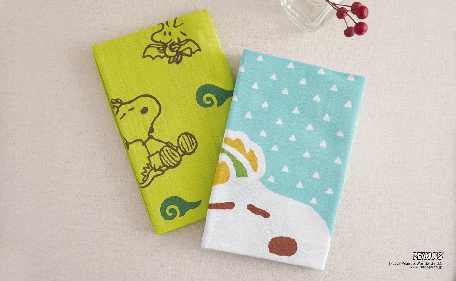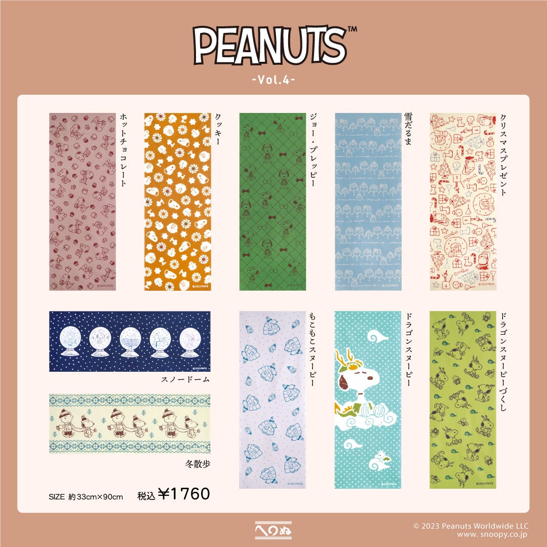 また今回は2024年の干支である辰の衣装を着たスヌーピーとウッドストックが描かれた、特別なデザインの辰年手ぬぐいが登場。普段使いやインテリアに取り入れるのはもちろん、新年のごあいさつにいかがでしょうか。是非この機会にお求めください。