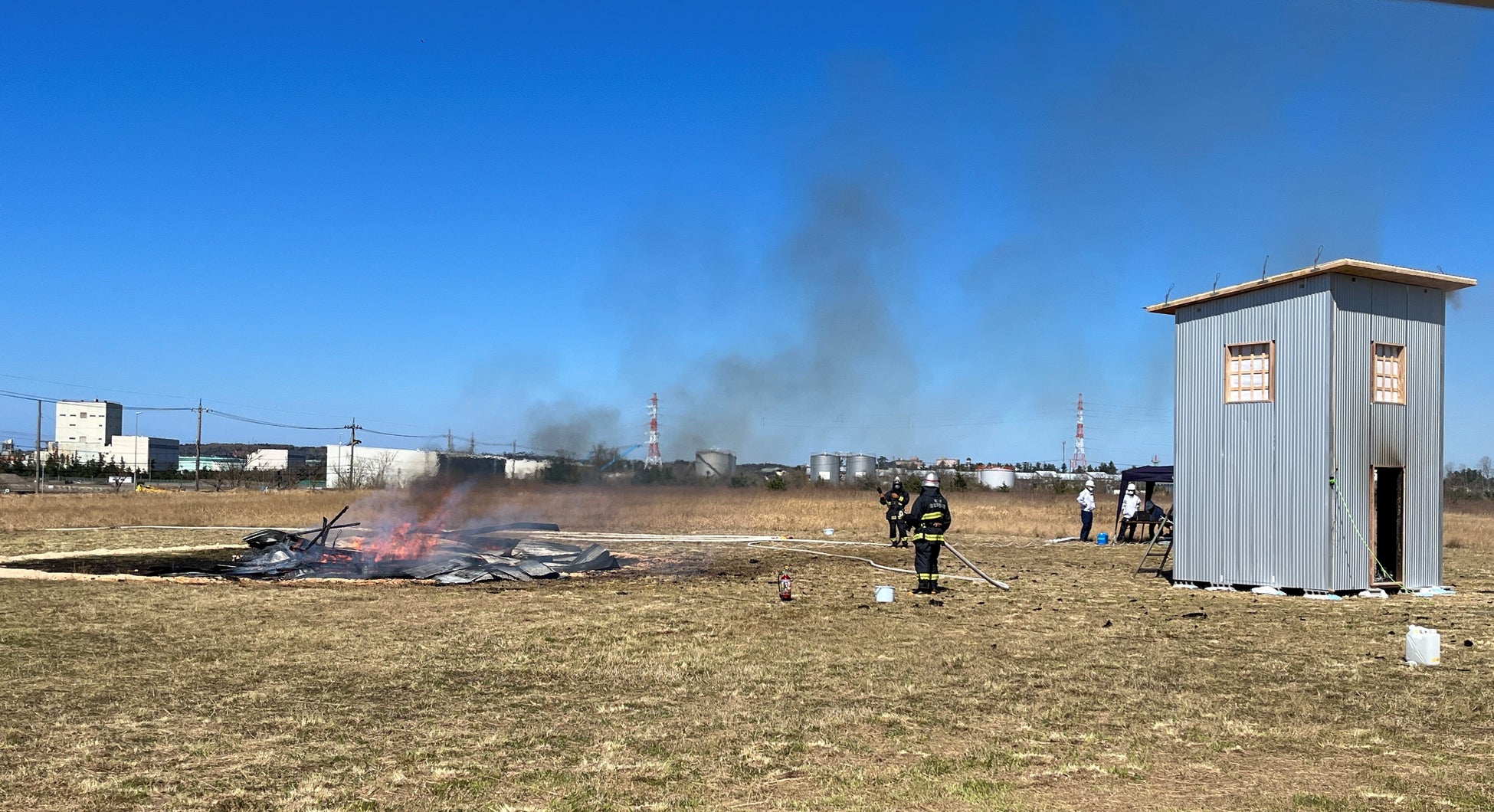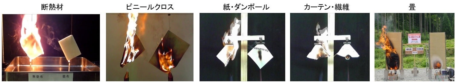 着火して約13分で「不燃処理なし実験棟」は燃え落ち、「セルフネン処理あり棟」は内部が焦げて炭化しただけであった。