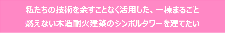 安全で安心な燃えない街づくりのために。2025年までに火災にならない木造耐火建築のシンボルタワーを建てたい
