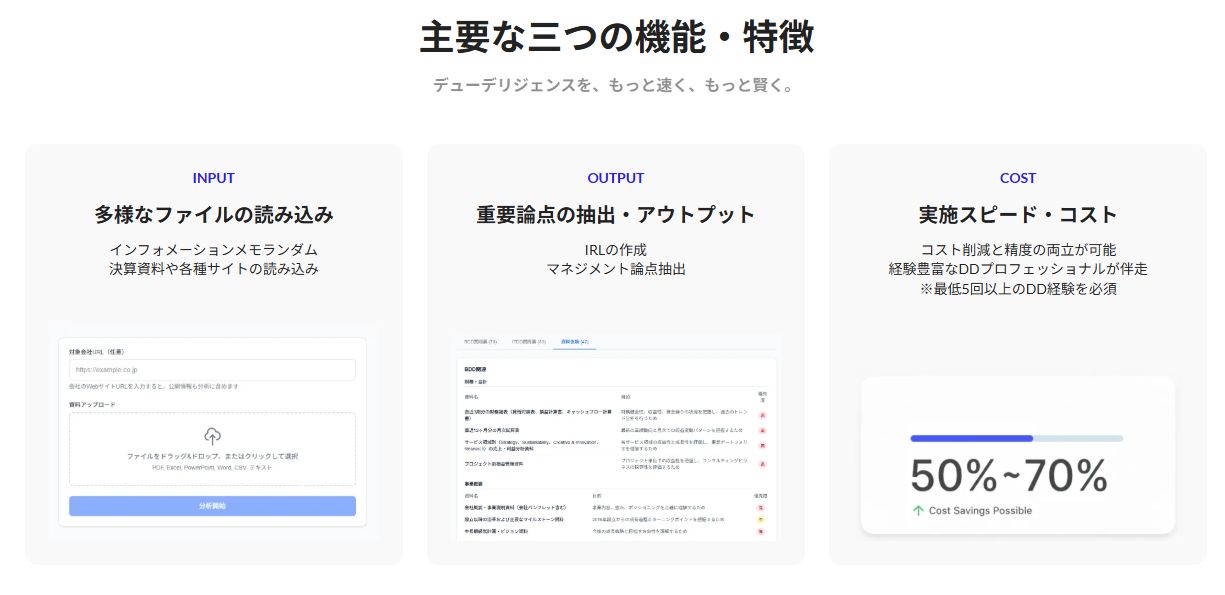 デューデリジェンスを、合理的なコストで、もっと速く、もっと賢く。