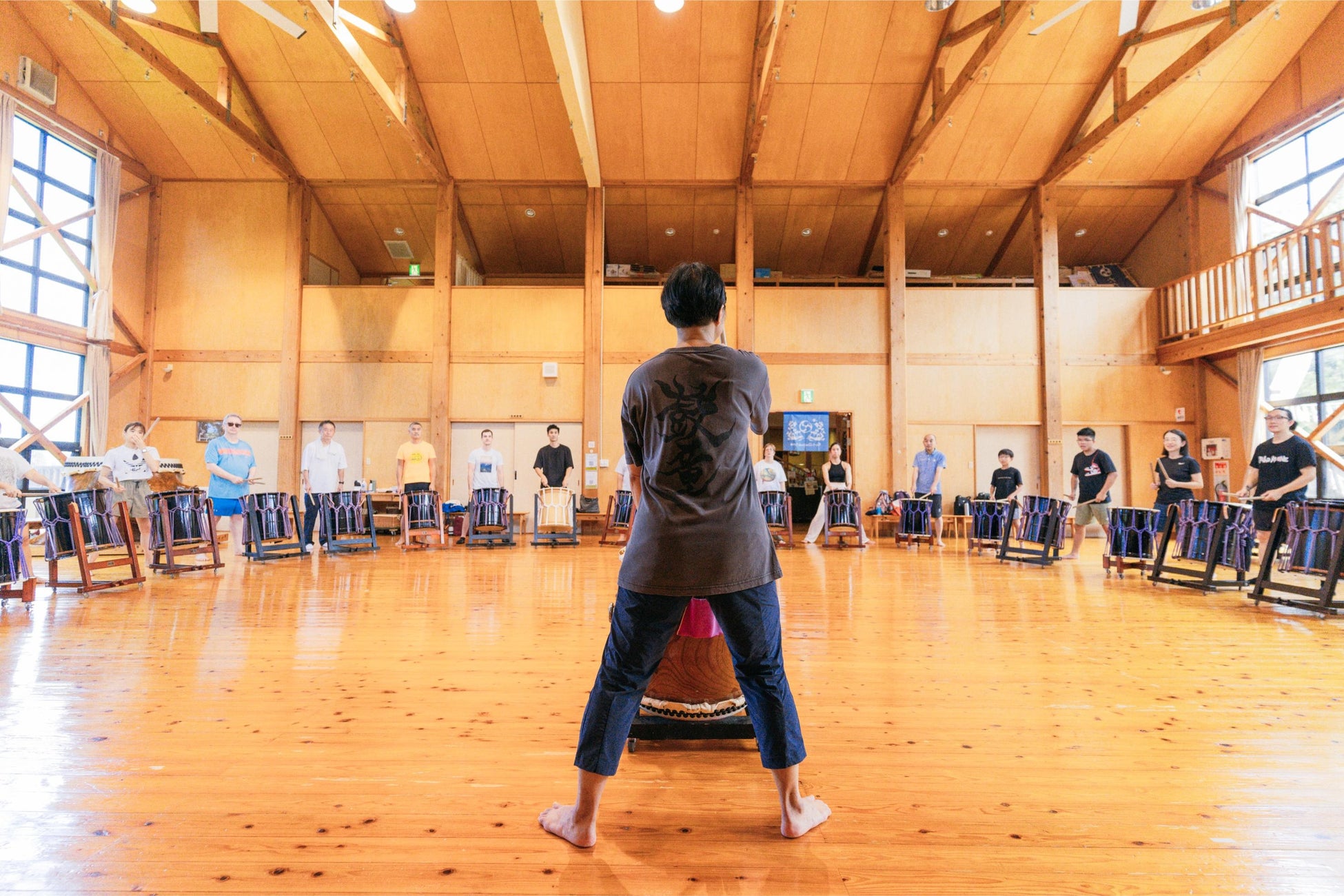 2時間たっぷりの佐渡の鬼太鼓体験、地元のチームに習う祭り太鼓、子ども向けのリトミックプログラム、鼓童メンバーによる茶会、そしてより専門的な技術を求める鼓童のメンバー、OBなどによる太鼓や笛、鳴り物のワークショップも用意しています。