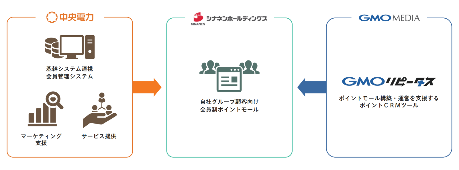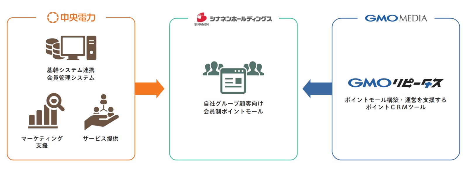 今回開発したポイントモール・ソリューションは、GMOメディアが2017年3月より提供している企業向けポイントモール構築・運営を支援するポイントCRMツール「GMOリピータス」を活用し、エネルギー関連企業へのDX支援および顧客へのアップセル・クロスセル向上に特化した独自ソリューションです。GMOメディアは、ポイントモールの構築・運営を、中央電力は、会員管理システムの提供や基幹システムとの連携、運用にあたって必要となるサービス開発やアップセル・クロスセルのマーケティング支援などのノウハウ提供を担います。本ポイントモール・ソリューションを通じて、新しい顧客接点の構築を行いたいという電力会社をはじめとするエネルギー業界のニーズに応えてまいります。