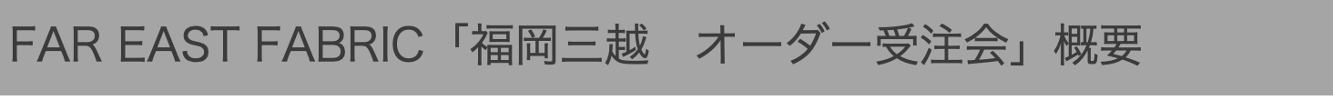 株式会社ファーイースト(本社:福岡県北九州市/代表取締役 川俣大輔)が手がける、着物リメイクブランド「FAR EAST FABRIC」は年9月21日(水)〜2022年9月27日(火)の期間、「福岡三越」7階紳士服売場にて初のオーダー受注会を開催します。