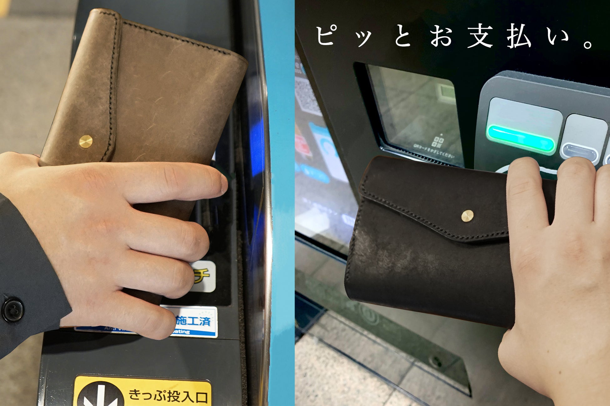 クレジットカードやIC、IDカードなど、非接触決済カードをシークレットポケットに入れておくとタッチ決済が可能となり、お支払いの時短になります。(※同種類のカードを一緒に入れると、誤作動で反応しない場合がございますのでご注意ください。)AirTag等忘れ物防止タグを入れると、なくさない財布に!