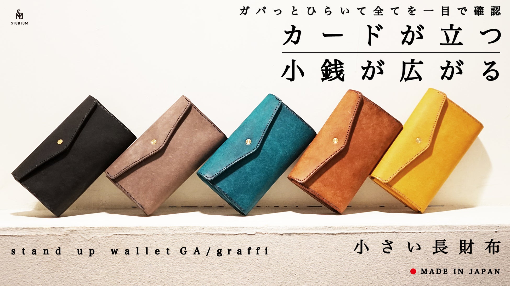 【新製品】STUDIUM 「カードが立つ/小銭が広がる」小さい長財布『スタンドアップウォレットGAグラフィー』