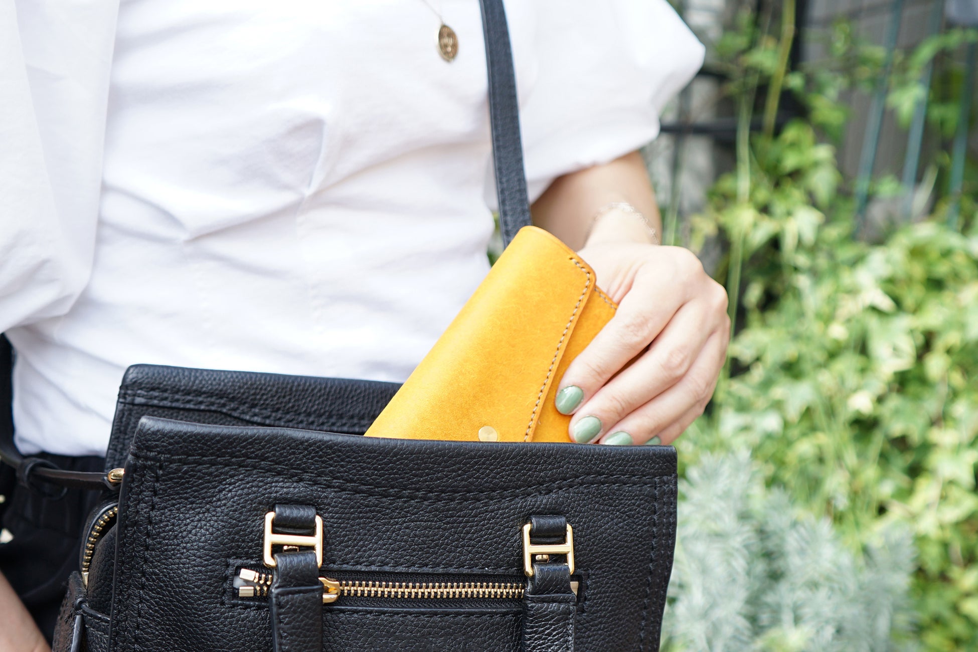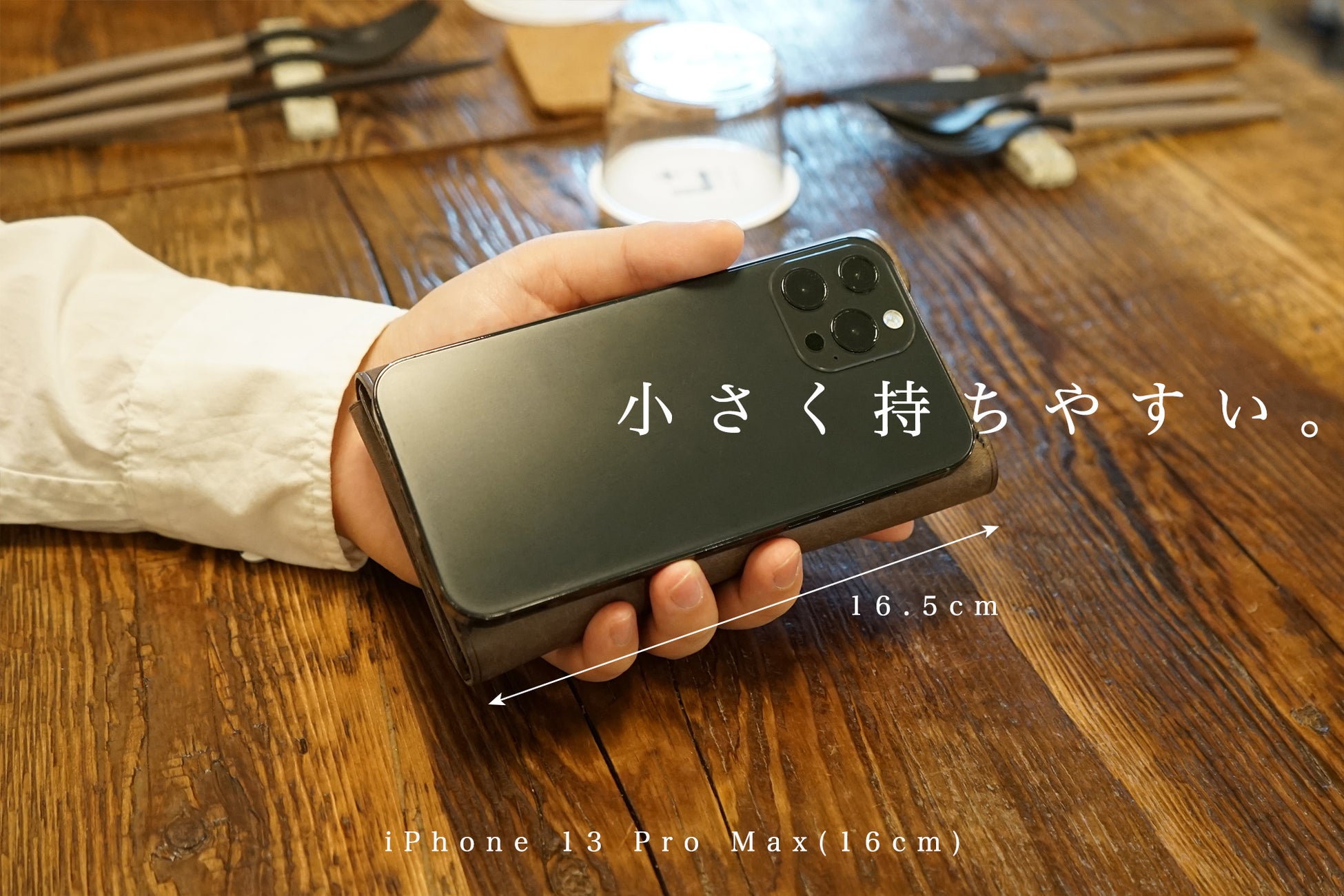 お札のギリギリサイズでは使い勝手が悪くなります。お札が引っかかり、出しにくかったり、ファスナータイプではお札の端が破れたり・・・握りやすく、ミニバックにも収まり、ズボンの後ろポケットにも収まるサイズでありながら「使いやすいコンパクト」を目指しました。スマホサイズの小さい長財布なので、ちょっとコンビニに、ちょっとランチに行く時バッグを持たず、スマホと身軽に。