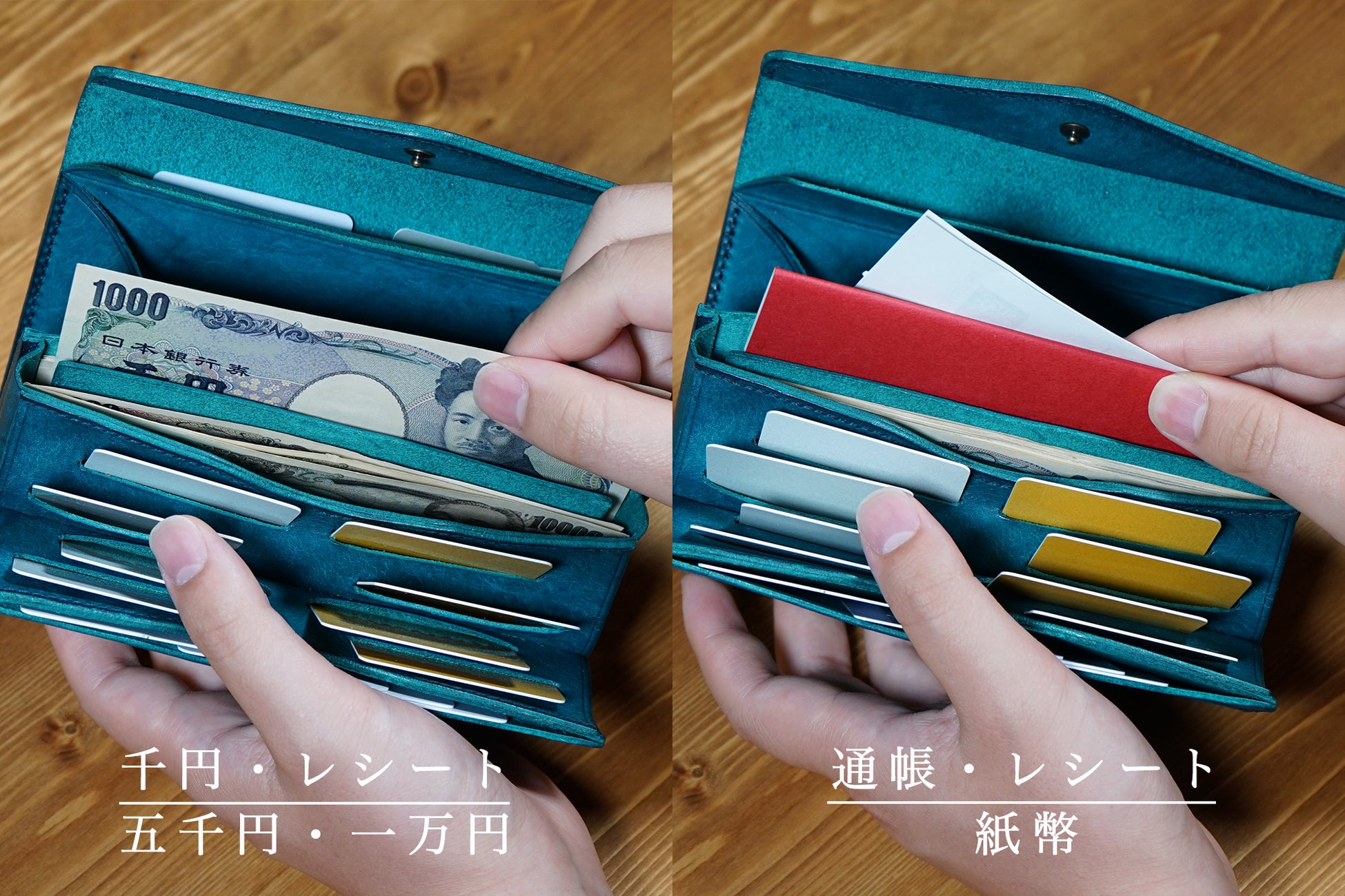 お財布の機能性はとても大切ですが、本革のお財布は大人の持ち物として、見た目の質感、手触り、エイジング・・・ただの便利な道具ではなく、愛着を持って、共に過ごす相棒としてお選びいただきたいと考えています。