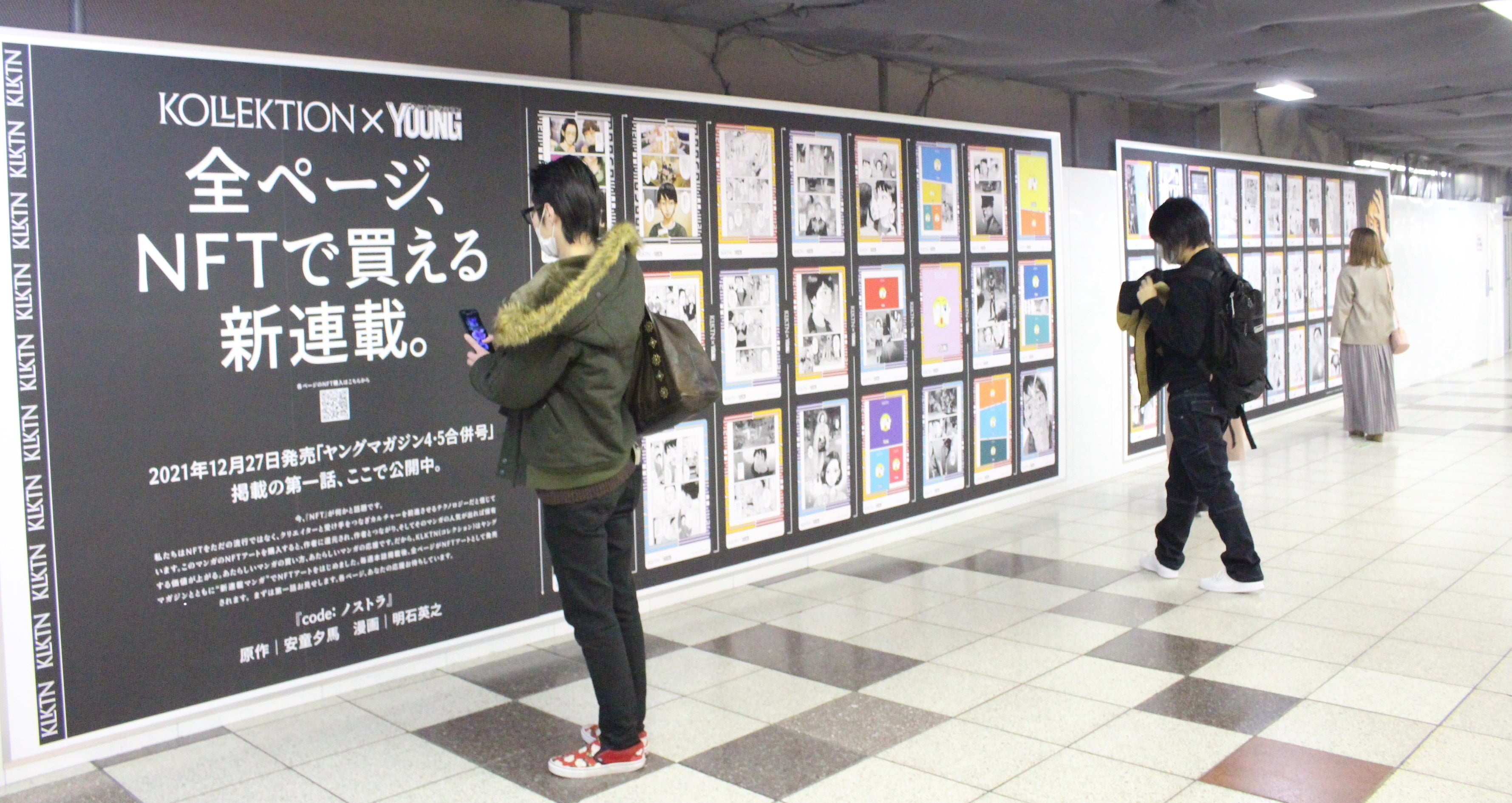 KLKTNは、テクノロジーの力で作家とファンとの新しい繋がりを創造することを目指し、2021年12月27日より「Kollektion」において、国内マンガ作品を取り扱うカテゴリーのα版を設置いたしました。取組みの第一弾として、ヤングマガジン編集部と連携し、同日午前10時よりヤングマガジンにて新たに連載を開始した『code:ノストラ』の全ページをNFT化し、作品として販売したところ、販売開始から約12時間後には完売いたしました。なお、販売された合計点数は255部(全51ページ、各5部)になります。お気に入りのページを1部購入される人が約半数を占めましたが、中には30ページまとめて購入する例も見られました。