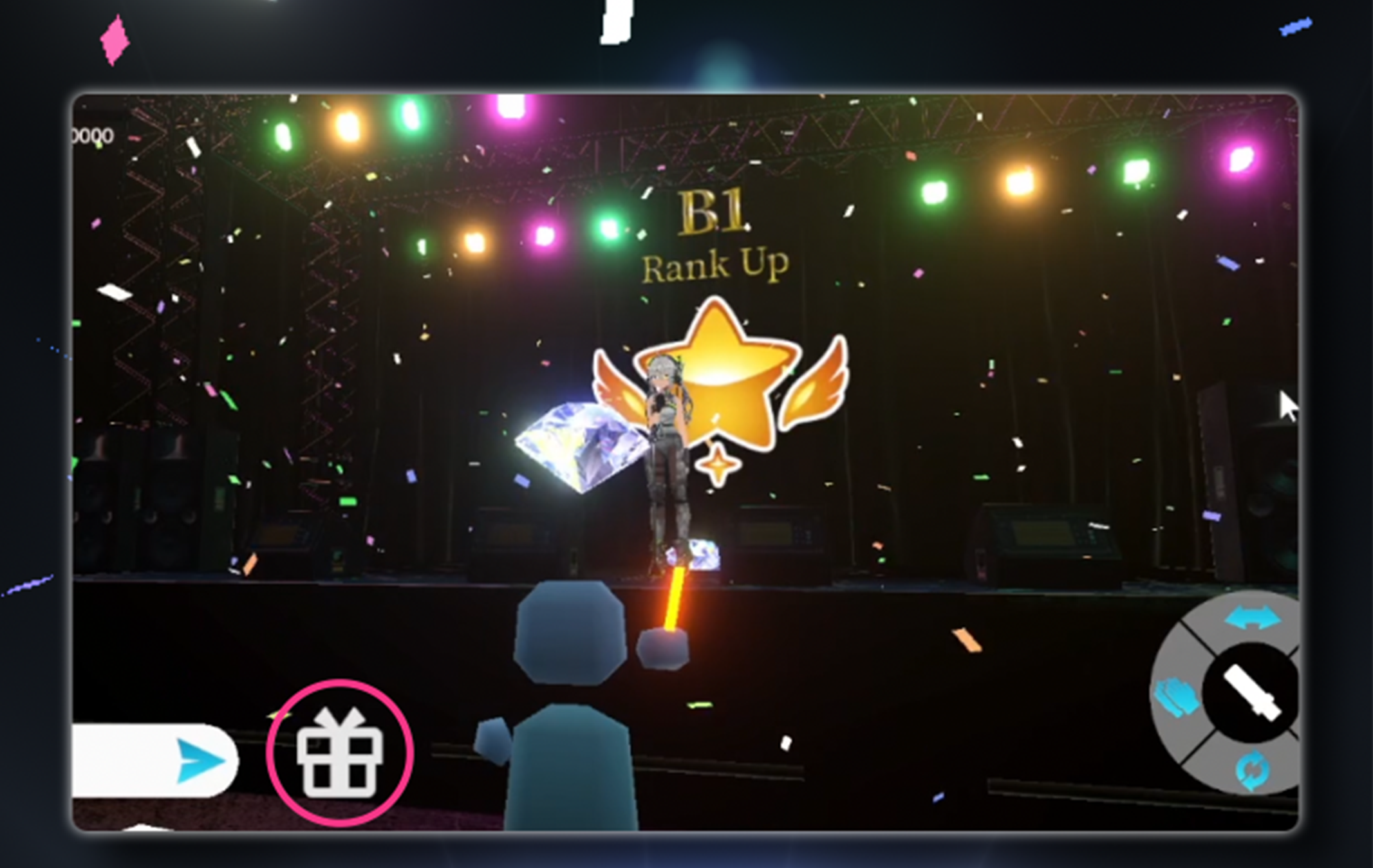 バーチャルライブ中にギフトを贈ると、自分の観客アバターよりステージ上にギフトアイテムが投げ込まれます。