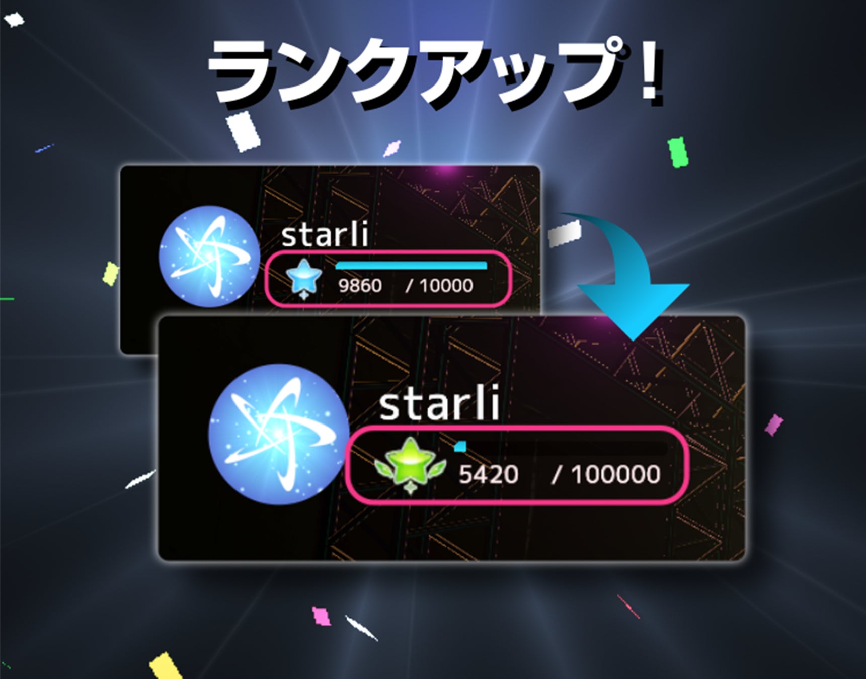 ゲージの数値が規定数に達すると「ランクアップ」です。