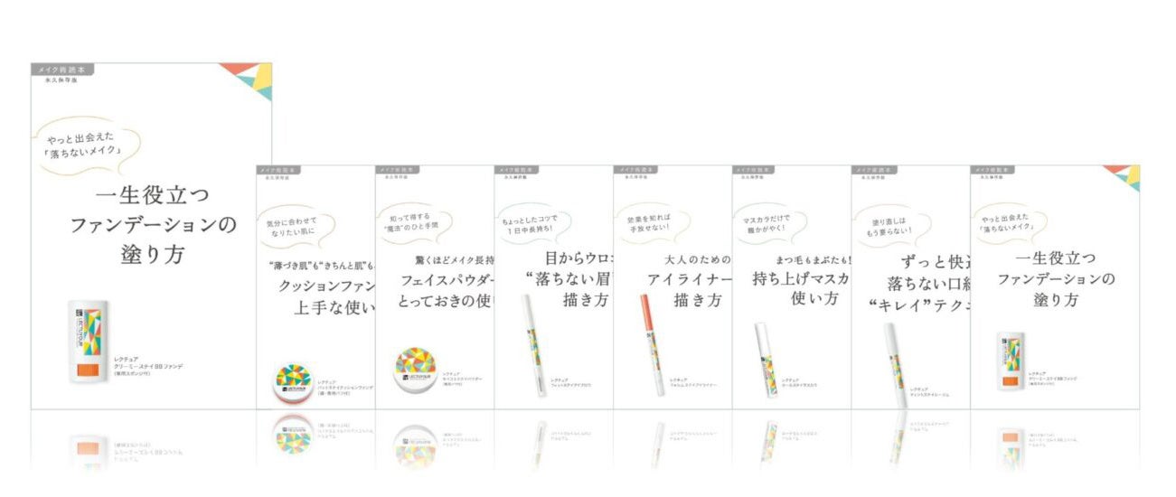 また、仕上がりの良さや使い心地などにこだわって作られたメイクアイテムは他にもたくさんありますが、”うまく使えないとその機能を十分に発揮することはができない”という想いから、『レクチュア』のアイテムにはすべて、ヘア&メイクアップアーティストの長井かおりが監修したオリジナルメイク術読本が付いています。