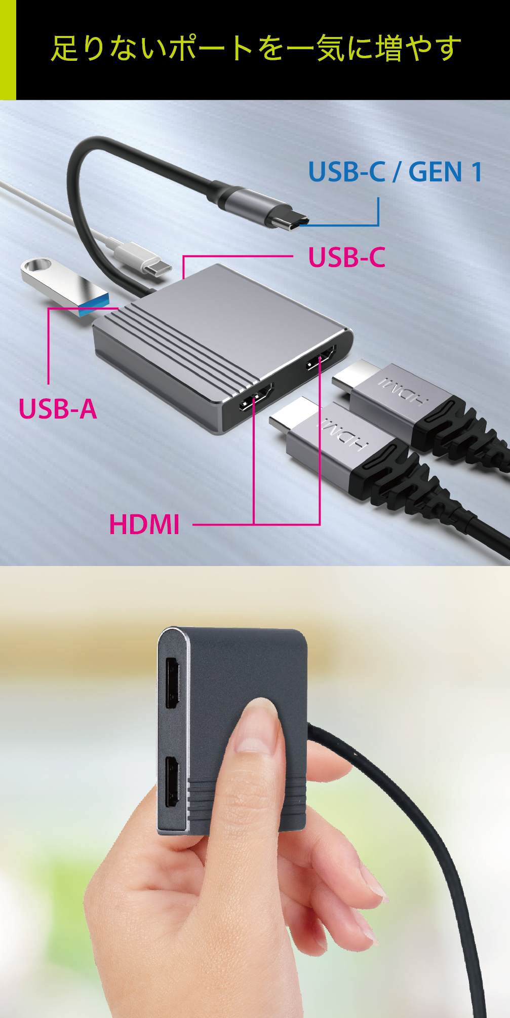 ◆ USB Type-C、Type-A、HDMIのポートを備えたミニマル・ドッキングステーション