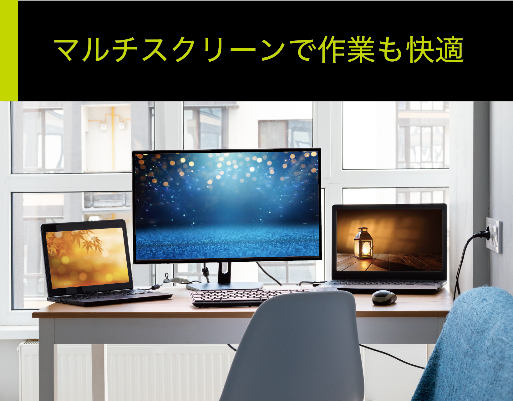 ◆ デュアルHDMIでスマホやPCの画面を「拡張マルチディスプレイ」&「ミラーリング」
