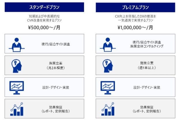 例えば、お客様企業が既にほかのテストツールをご導入されている場合には、「Googleオプティマイズ」を導入した場合と比較したメリット・デメリットを明確にご提示し、ご納得をいただいた上でA/Bテストの立案から計測結果のご報告、改善案のご提示までをトータルにサポートします。これにより、お客様はPDCAサイクルを効率的に推進できるだけでなく、コストカットを図ることが可能です。