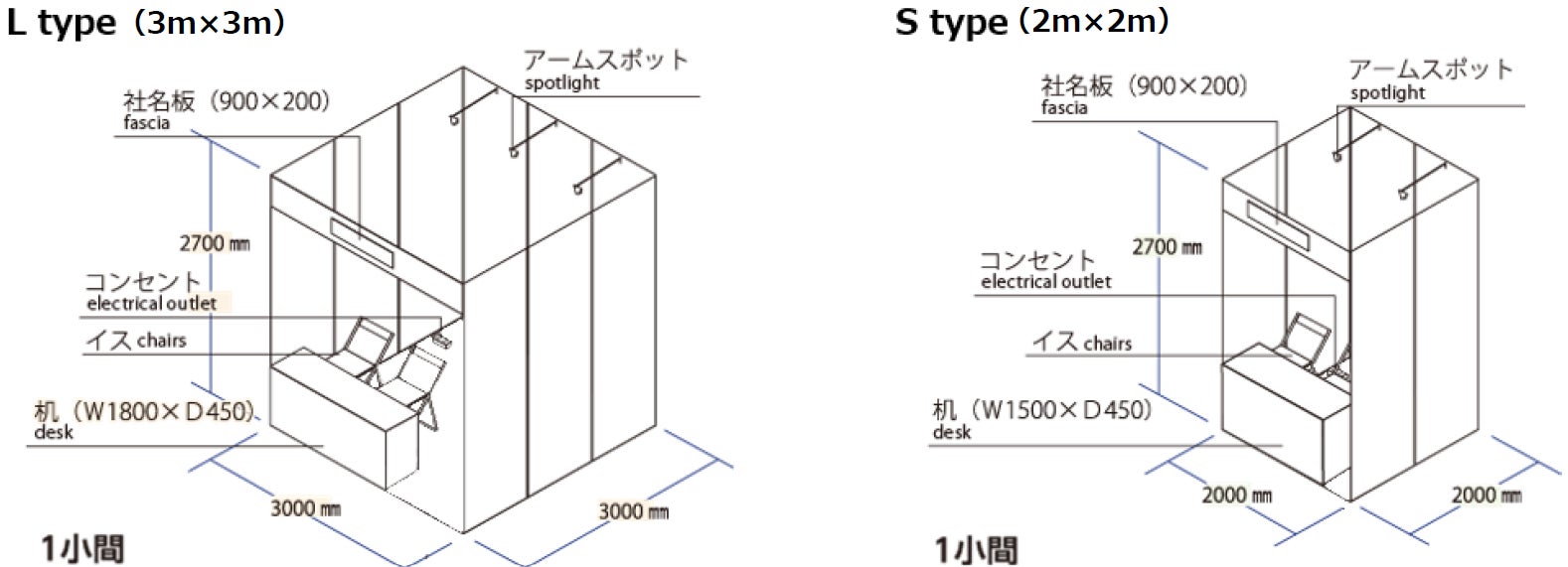 (1)パッケージ Lタイプ(1小間=間口3m×奥行3m)