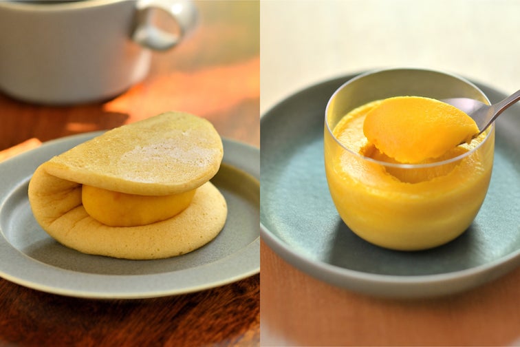 今回のポイントは、「完熟」という点が味の決め手です。そのため、滑らか食感ではなく“ほっこり”食感の菓子に仕上げました。