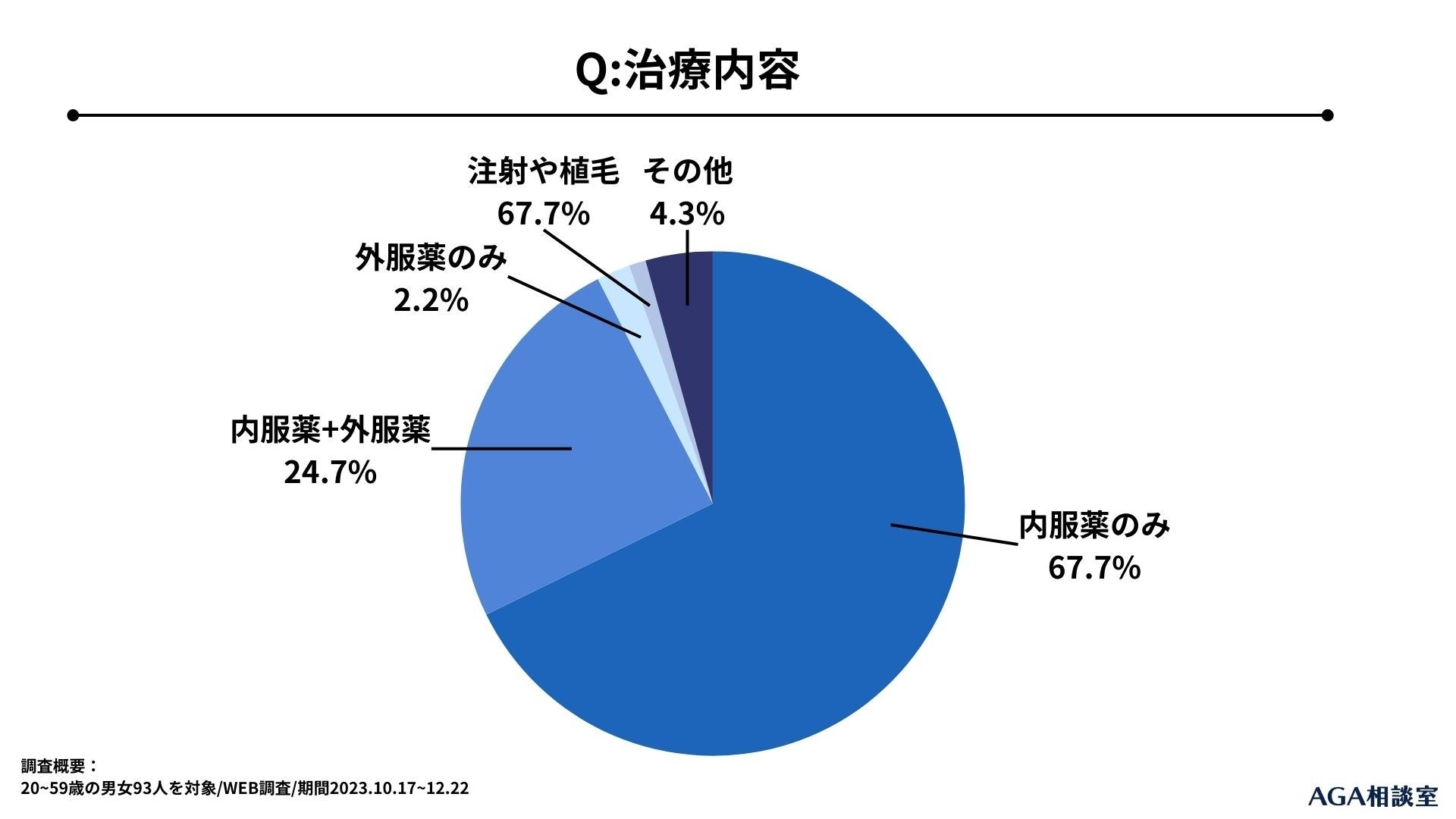 どのような治療を行なっているかのアンケートでは「内服薬のみ」が67.7%という結果でした。