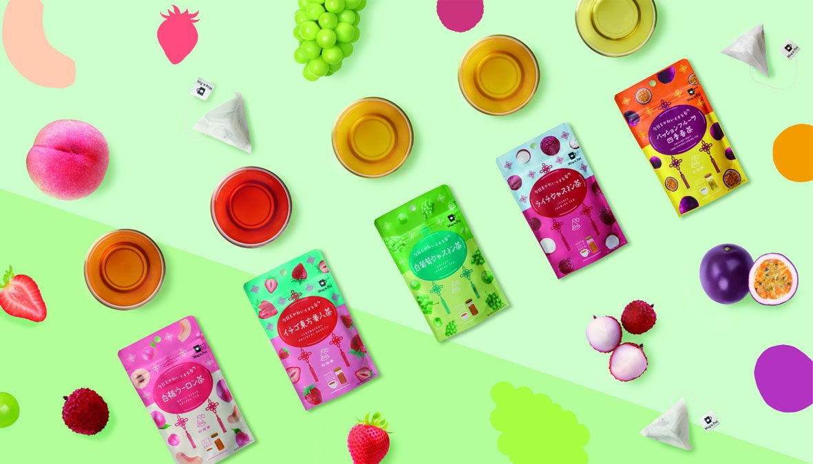 新コンセプトは「今日をかわいくする香り」。フルーツのみずみずしさがより豊かに香る、華やかで上品な味わいになっています。またパッケージも一新し、たくさんのフルーツから一目で香りを想像できるようフレッシュさを表現しつつ、アジアンテイストでさまざまな方々に手に取っていただけるようなデザインに仕上げました。さらに今回のリニューアルと共に、「パッションフルーツ四季春茶」と「ライチジャスミン茶」の新たな2種類のフレーバーが登場します。