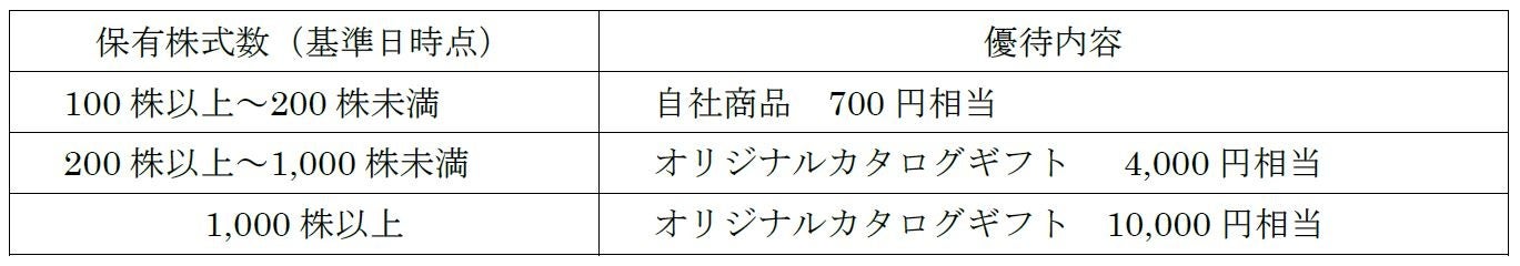 自社商品や、当社とゆかりのある地域の特産品などを掲載したオリジナルカタログを、保有株式数に応じて贈呈いたします。