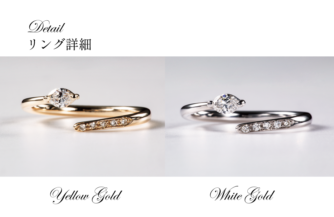 地金はイエローゴールドかホワイトゴールドからご選択いただけます。