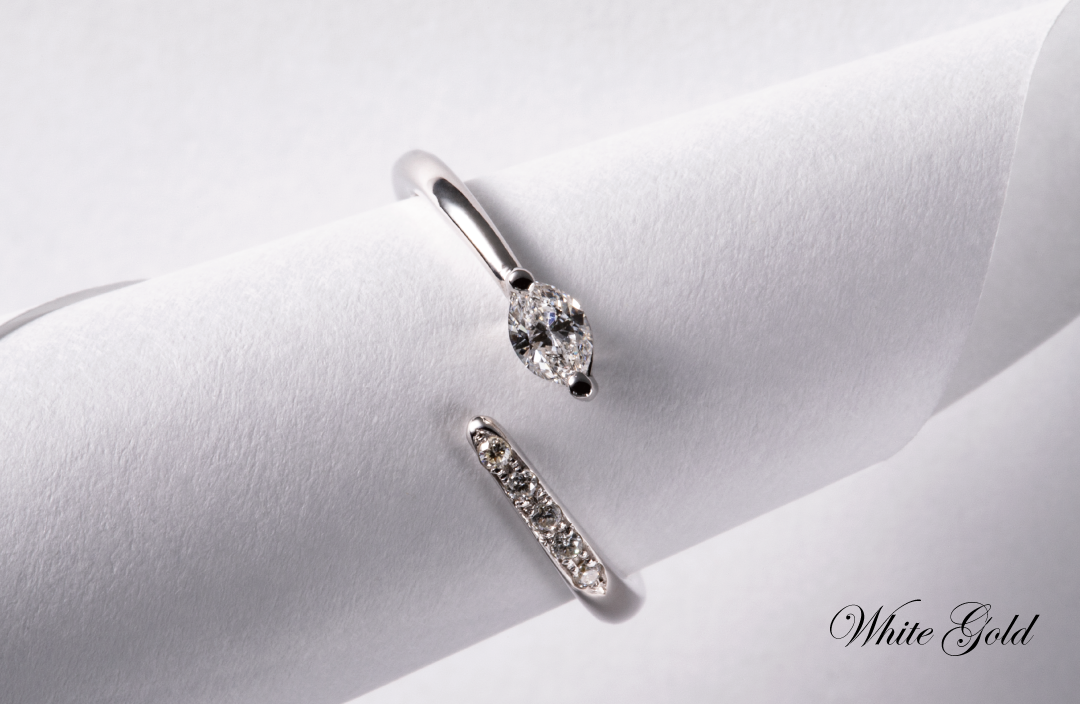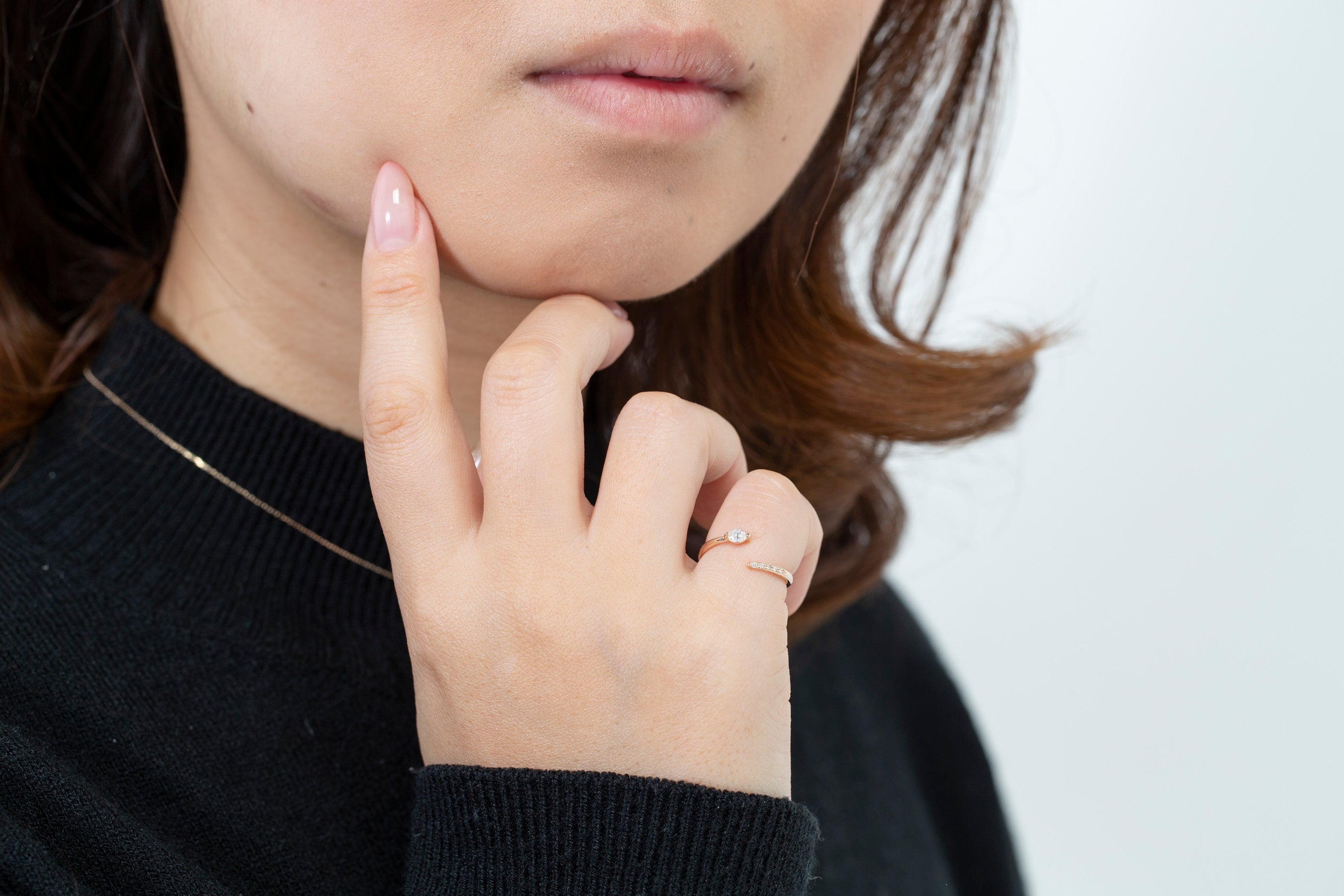 デザイン性はさることながら、開いた形のデザインのため、関節を通しやすくなり、「関節でリングがとまってしまう」という方にもスムーズに着用いただけるかと思います。