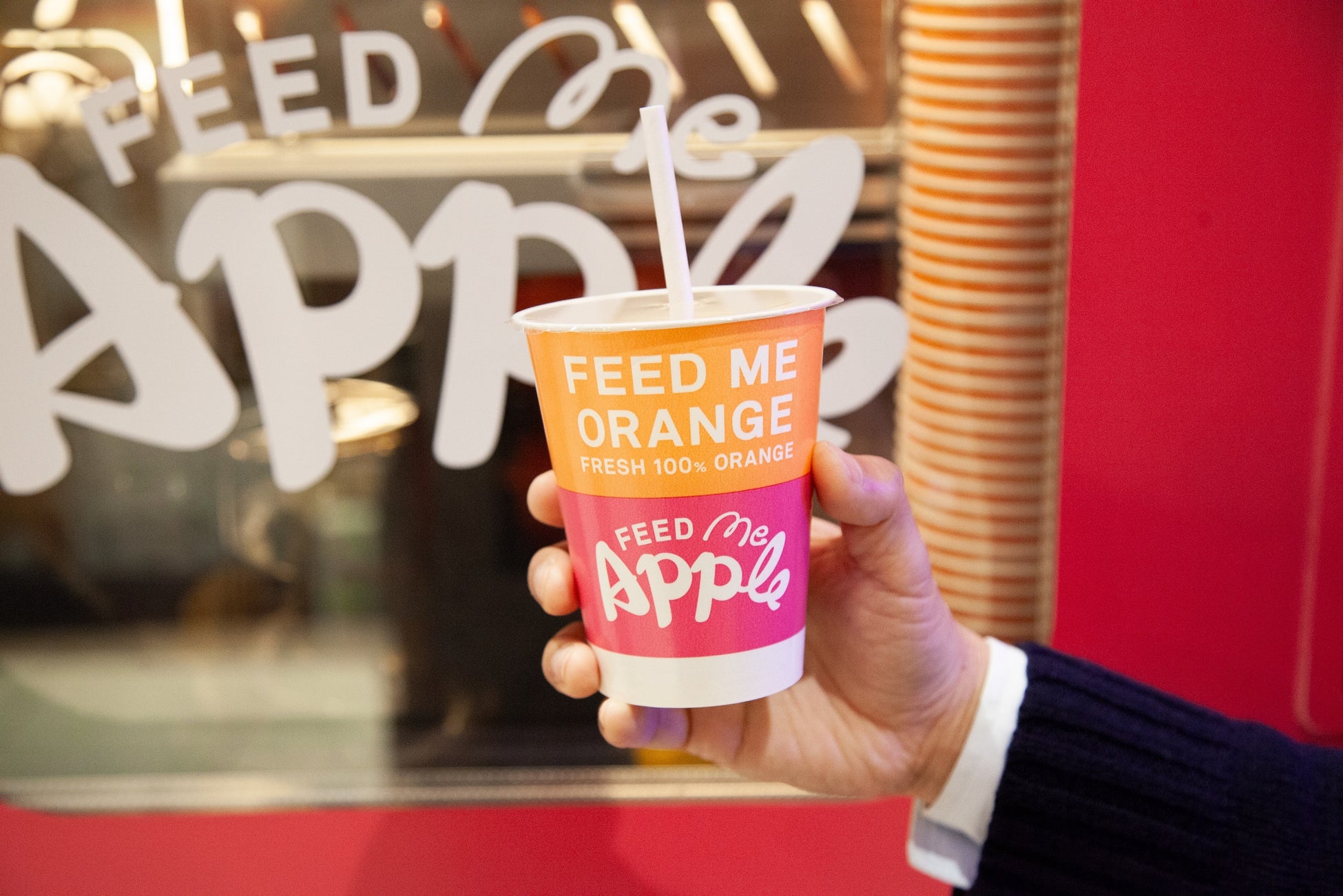 2021年7月にME Group Japanが日本で初めて導入して以来、数多くのメディアで取り上げられて、大きな話題となっている生搾りオレンジジュース自動販売機「Feed ME Orange」に次ぐ、同社の生搾りジュース自動販売機の第2弾。注文してから約60秒で、果汁100%の無添加でフレッシュなアップルジュースをお届けします。