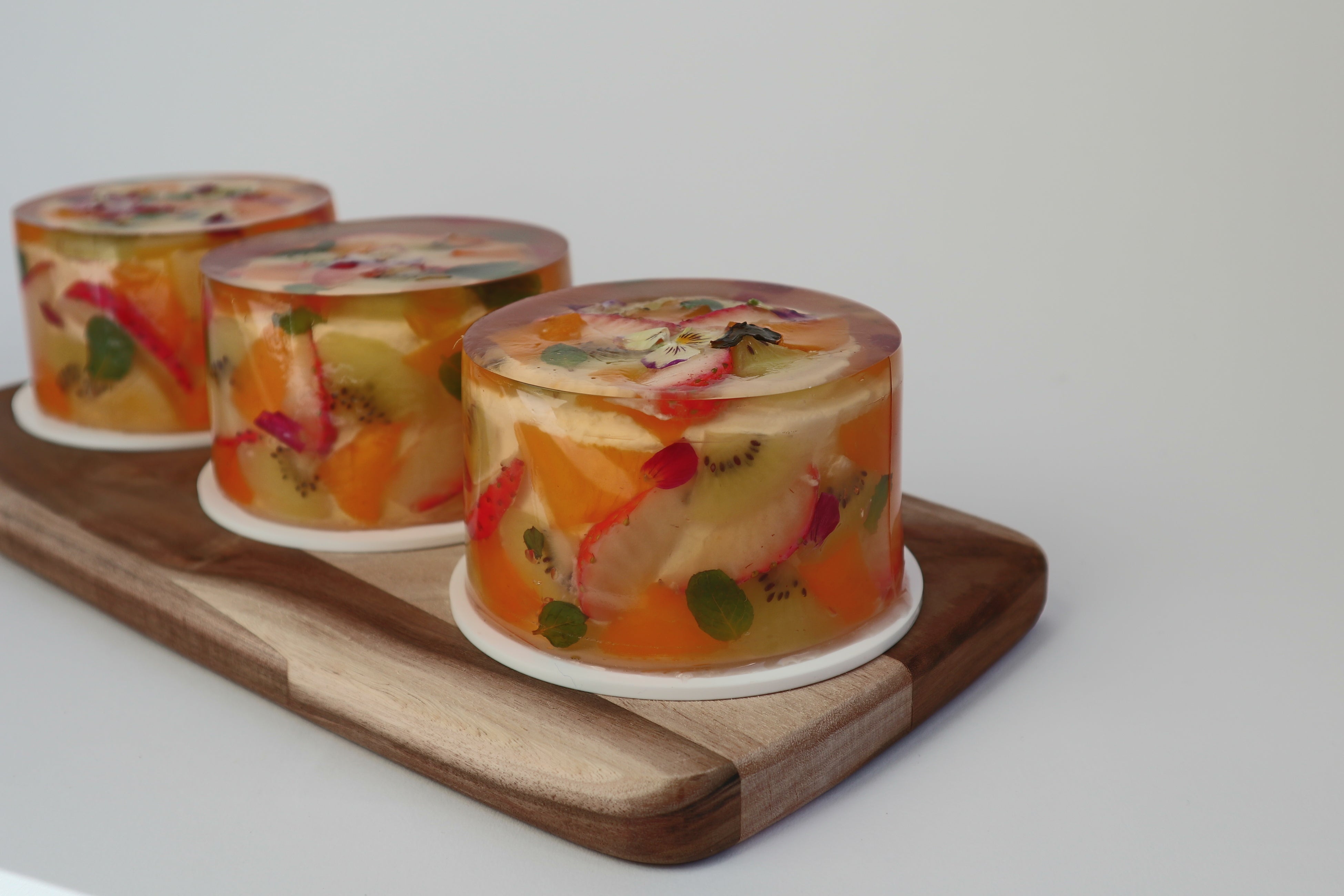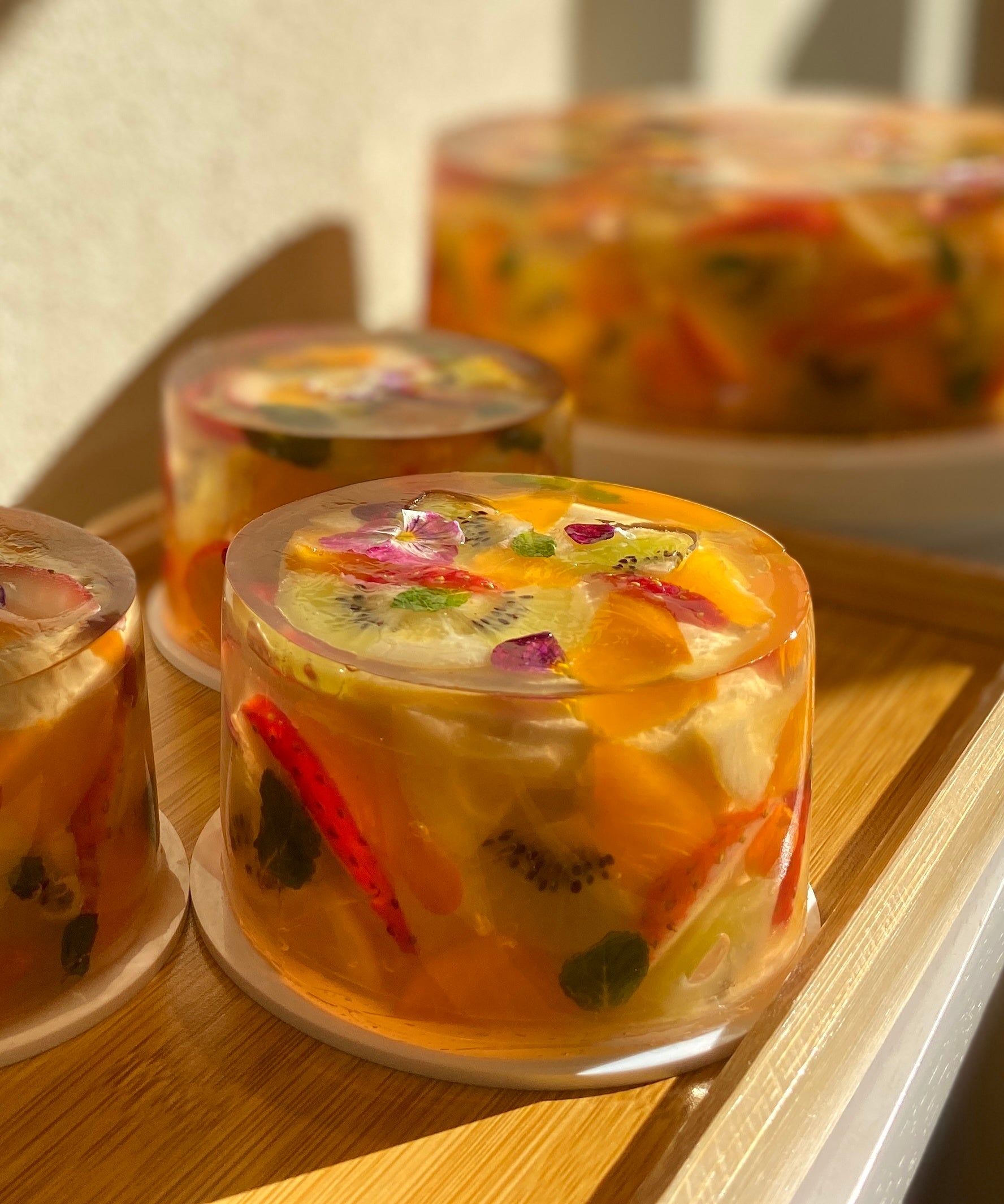 「クレマデフルータ(Crema de Fruta)」は、フィリピンの伝統的なフルーツケーキとして親しまれており、Half Saints TOKYOでは、創業パティシエであるジョー・アルシアガ(Jo Arciaga)がその伝統を敬意をもって新解釈し、宝石のように美しいクレマデフルータをつくりあげました。ふわふわのスポンジケーキにカスタードクリームをはさんで巻き、外側はディプロマットクリームで仕上げ、色とりどりの新鮮なフルーツとエディブルフラワーをゼリーで閉じ込めています。ゼリーは、長野県松川町のワイナリーでつくられるりんごのシードル「VinVie ロゼシードルセミスイート」を水を使わず100%使用し、爽やかでほのかな甘さをいかしてゼリーそのものの美味しさにもこだわりました。新鮮なフルーツ、スポンジケーキ、カスタードクリーム、生クリームの調和を考えて仕上げています。エディブルフラワーは、EDIBLE GARDENの農薬不使用栽培のビオラを使用しています。