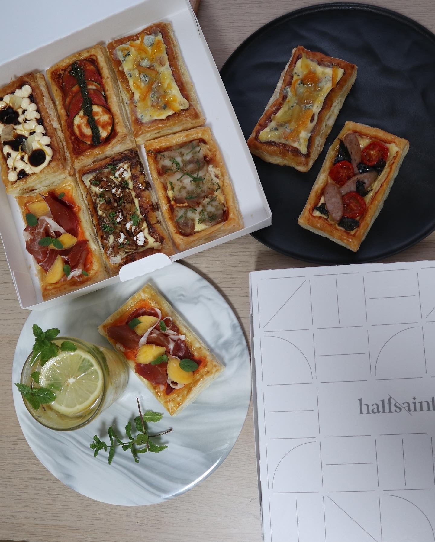 Half Saintsは常に新しい発見のある食体験を提供したいと、元ジャーナリストのクリスティン・ロケ(創業シェフ)とジョー・アルシアガ(創業パティシエ)がマニラで立ち上げたフードブランドです。世界中を旅して得た知見から2017年にカフェをスタートし、その料理とスイーツ、ホスピタリティで評判になり予約がとりにくい人気店となりました。2022年11月1日にオープンしたHalf Saints TOKYO(ハーフセインツ トーキョー)では、マニラの人気メニューであるパフピッツァをベースにしたテイクアウト・デリバリー専門店をスタートしています。