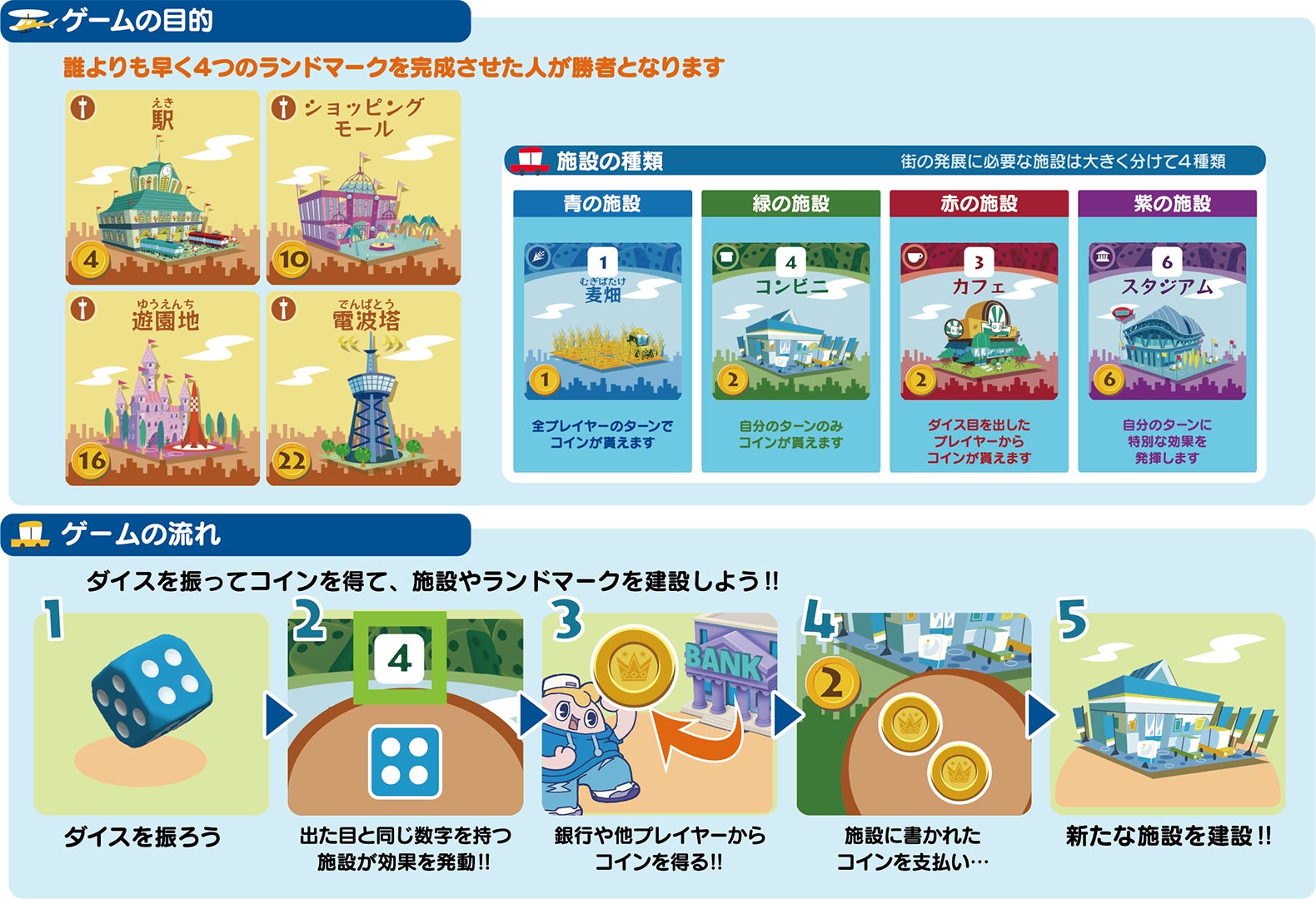 『街コロ』はサイコロとカードを使って誰でも簡単に遊ぶことができるボードゲームです。