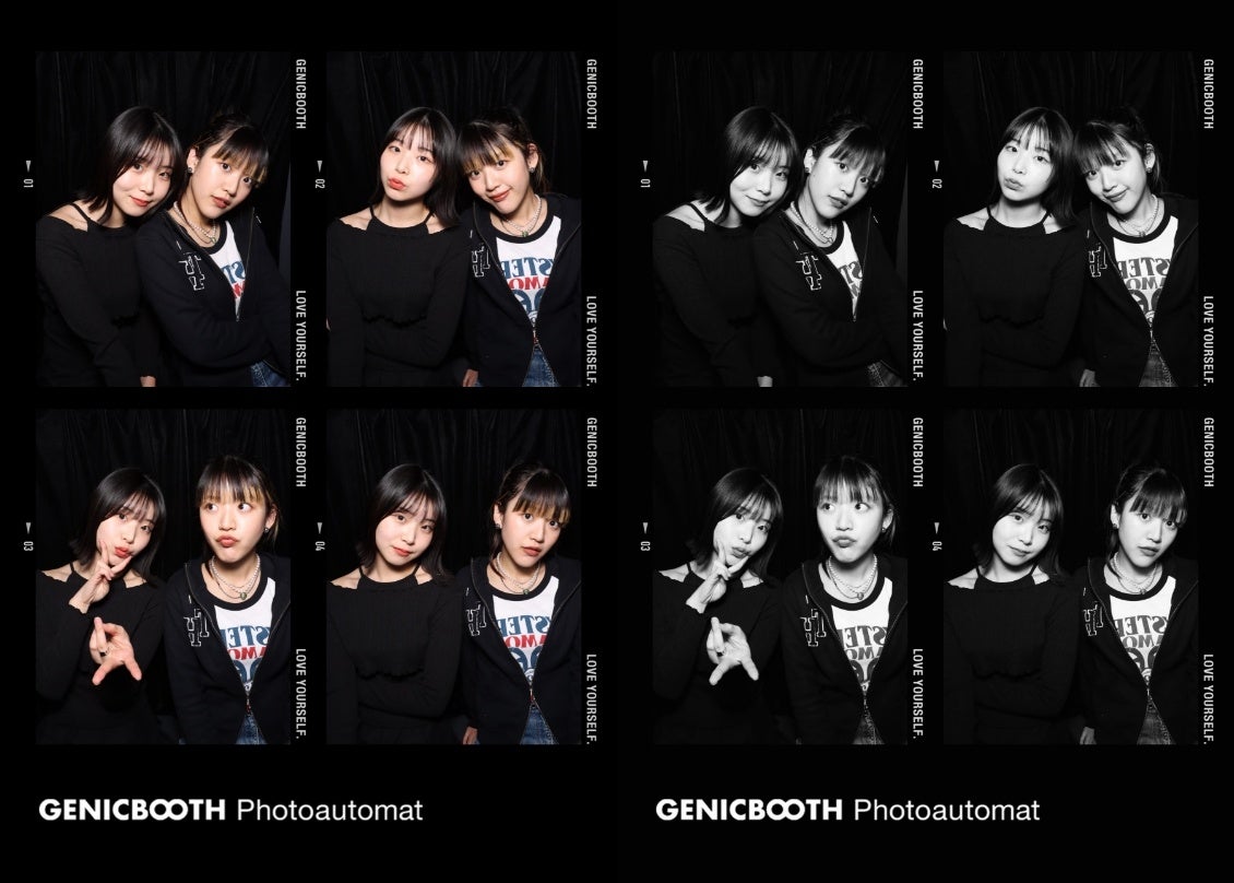 株式会社GENICBOOTH(東京都渋谷区)は、セルフ写真館での撮影体験を機械に落と込んだセルフフォトブース「GENICBOOTH Photoautomat」の3号機を新たに横浜ビブレに展開する。1回400円で全8カットが撮影でき、選んだ4枚は4カットデザインで2枚プリントされる。撮影データは8枚全てをQRコードからダウンロード可能。
