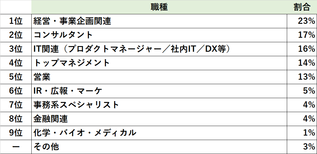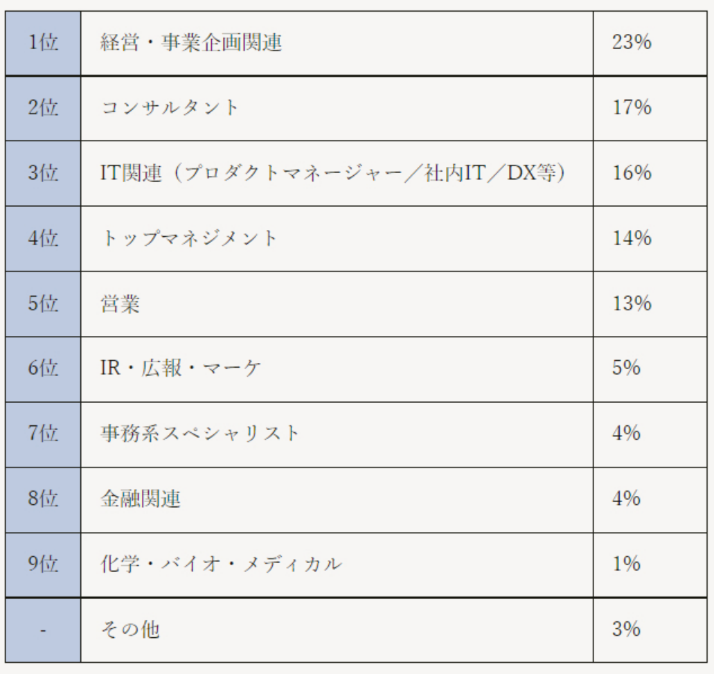 ■転職決定者 職種の分布 ウィズコロナで不透明な時代を見据えて経営企画・事業企画が増加