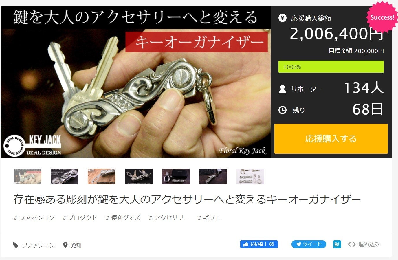 わずか3日で目標金額1000%達成!鍵を大人のアクセへと変えるキーオーガナイザーがMakuakeでデビュー!