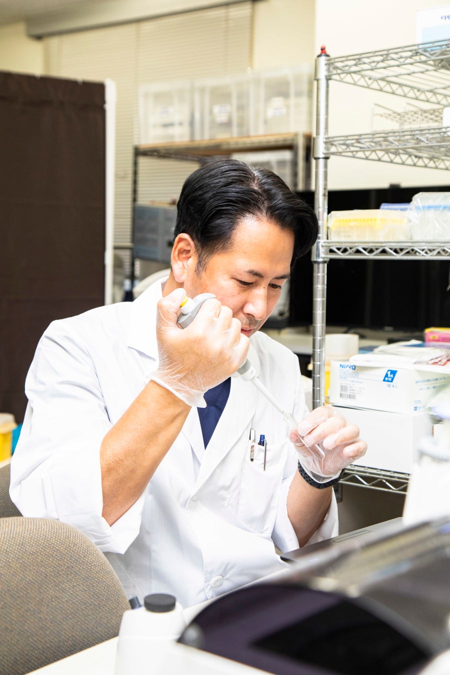 〈楢村先生〉腎臓の機能を代替する人工透析治療など、血液を綺麗にする治療法を専門に研究しています。腎臓病の治療法だけではなく、血液中の悪玉コレステロールを下げる治療法や、血液中の特定の不純物のみを除去する治療法なども研究しており、美容クリニックの顧問も務めています。