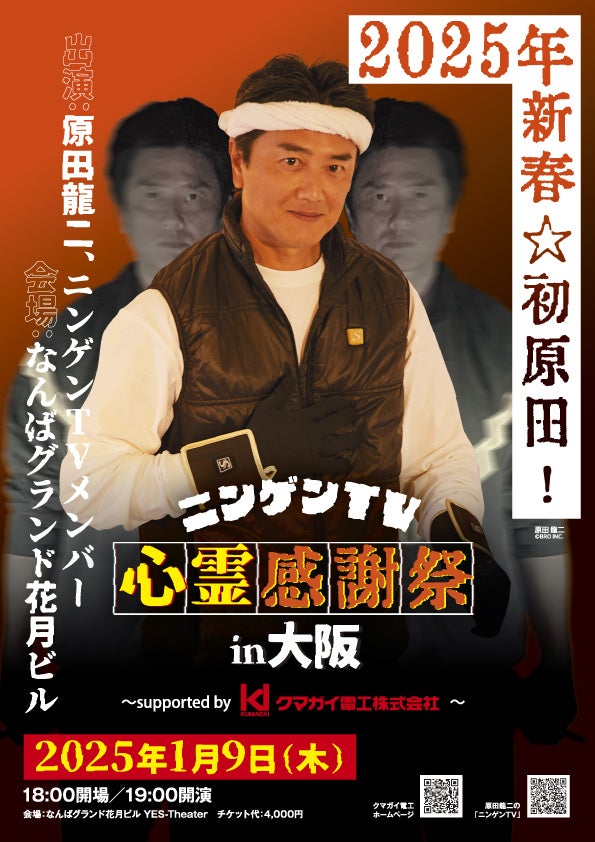 【原田龍二の「ニンゲンTV」】大阪ミナミにてリアルイベント「心霊感謝祭」2025年1月9日(木)開催!!(主催:クマガイ電工)
