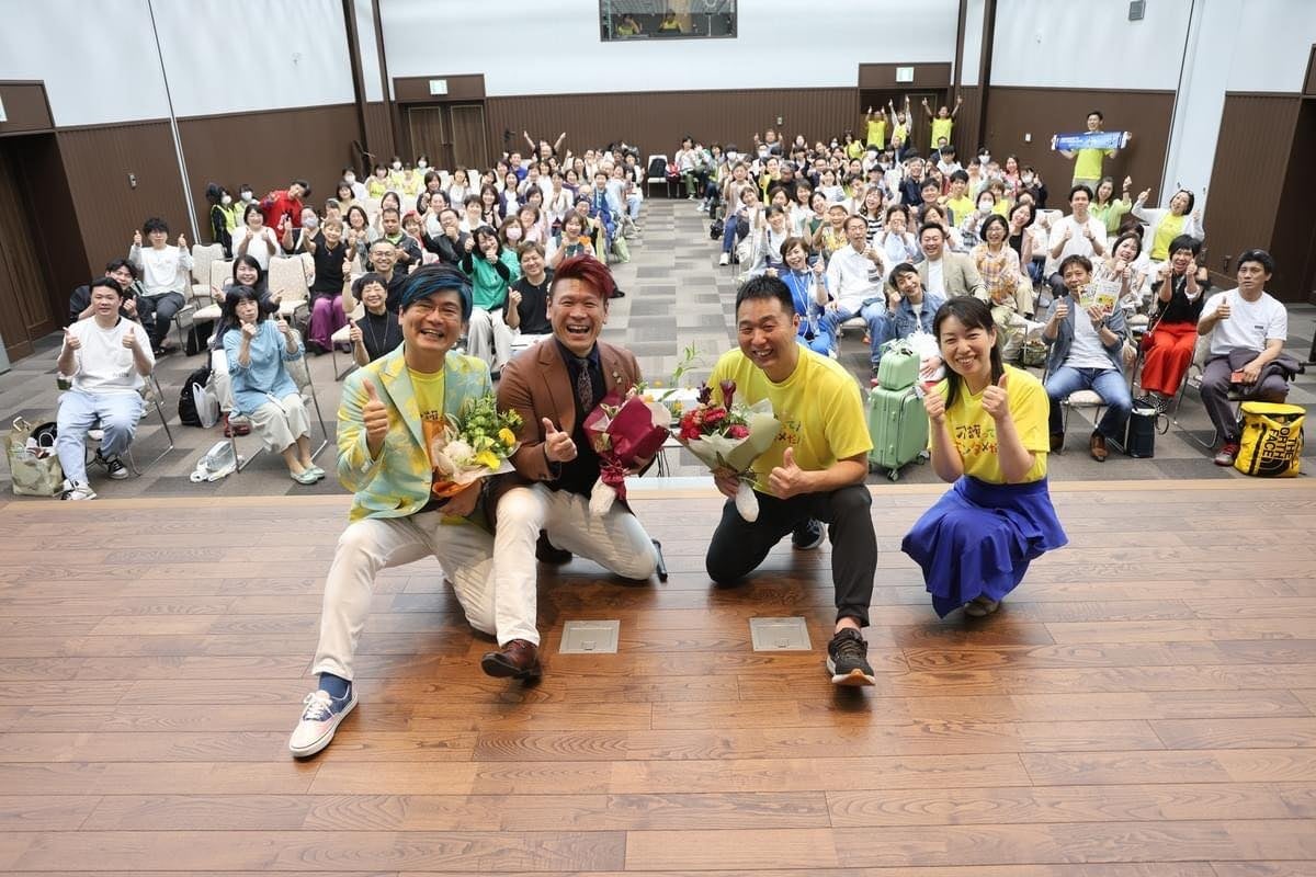 【集合写真】左から:森崎のりまさ・髙橋まちゃぴろ・川西だいご・矢部明子(主催)