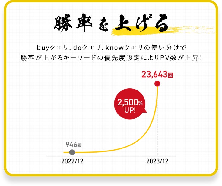 勝率の高いキーワードから取り組むことでPV数を上昇させます!