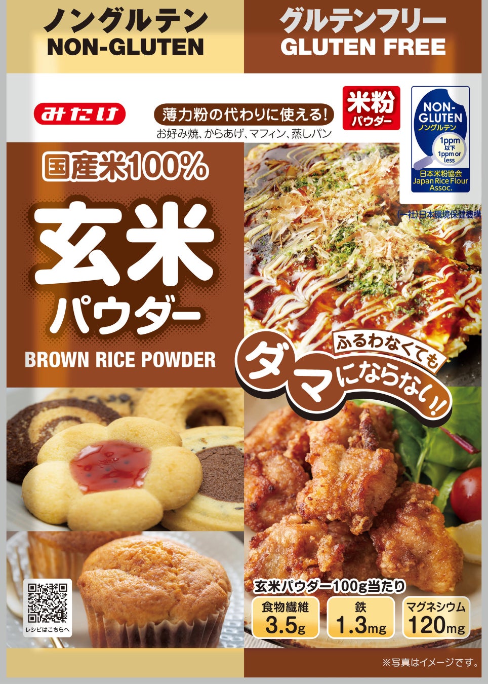 みたけ食品の玄米パウダーは、米粉メーカーとして培ってきた粉砕技術を活かし、生の玄米を微粉砕加工するため調理がしやすい玄米パウダーです。