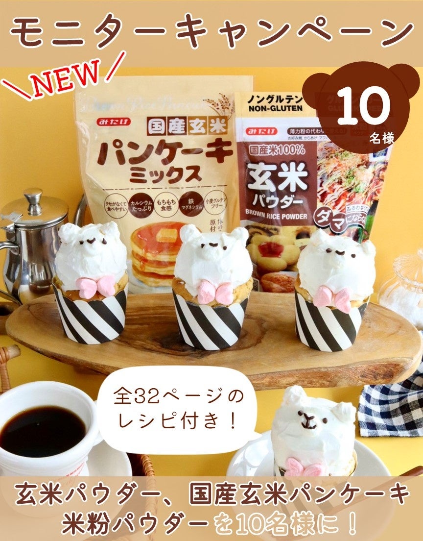 グルテンフリー 米粉製品 「玄米パウダー」「国産玄米パンケーキミックス」発売記念!Instagramで10名様のモニター募集!