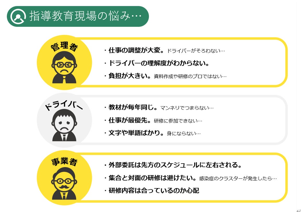 タクシー業界では電子決済や配車アプリをはじめ様々なオペレーションがDX化され効率化と生産性の向上が図られているなか、「安全教育」についてはまだまだ多くの課題が残されているのが実状です。