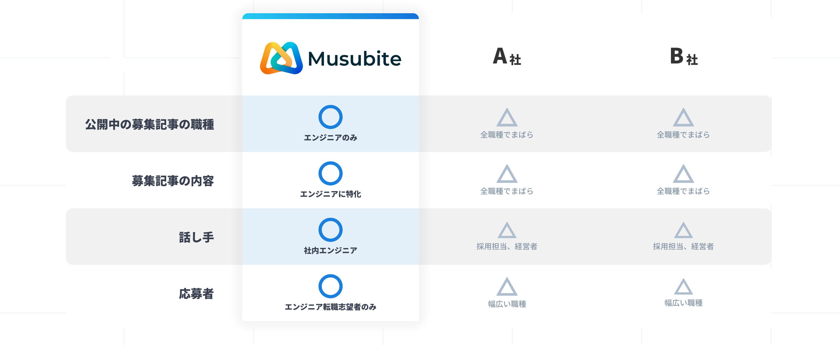 事業内容 : ITエンジニア特化型フォロワー採用サービス「Musubite」の開発・運営