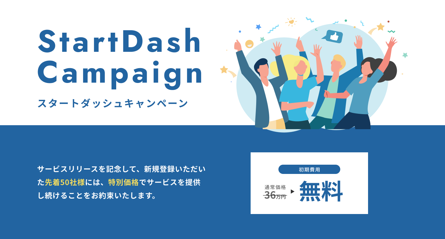 スタンダードプランへ申し込みをいただいた先着50社の企業様は、初期費用を無料とさせていただきます。