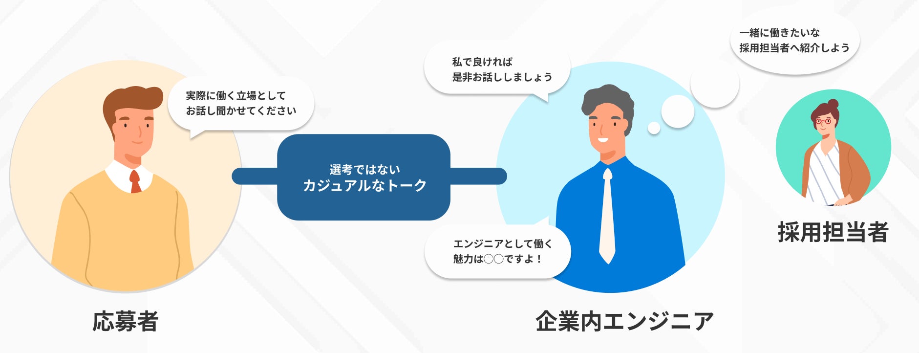 応募者が興味のある企業内エンジニアと気軽に情報交換できる
