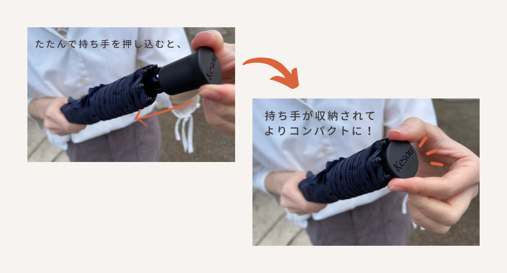 Kesouは、「普段から折りたたみ傘を持ち歩くことができれば、急場しのぎで買われるビニール傘の数を減らすことができ、ビニール傘の廃棄本数を削減することができる」と考えています。