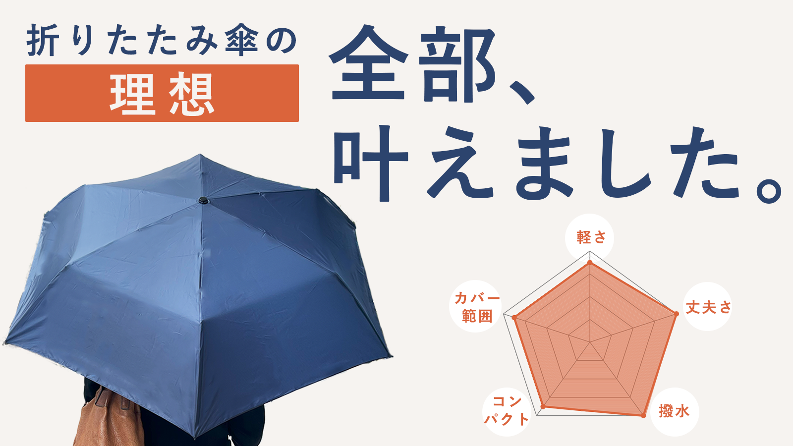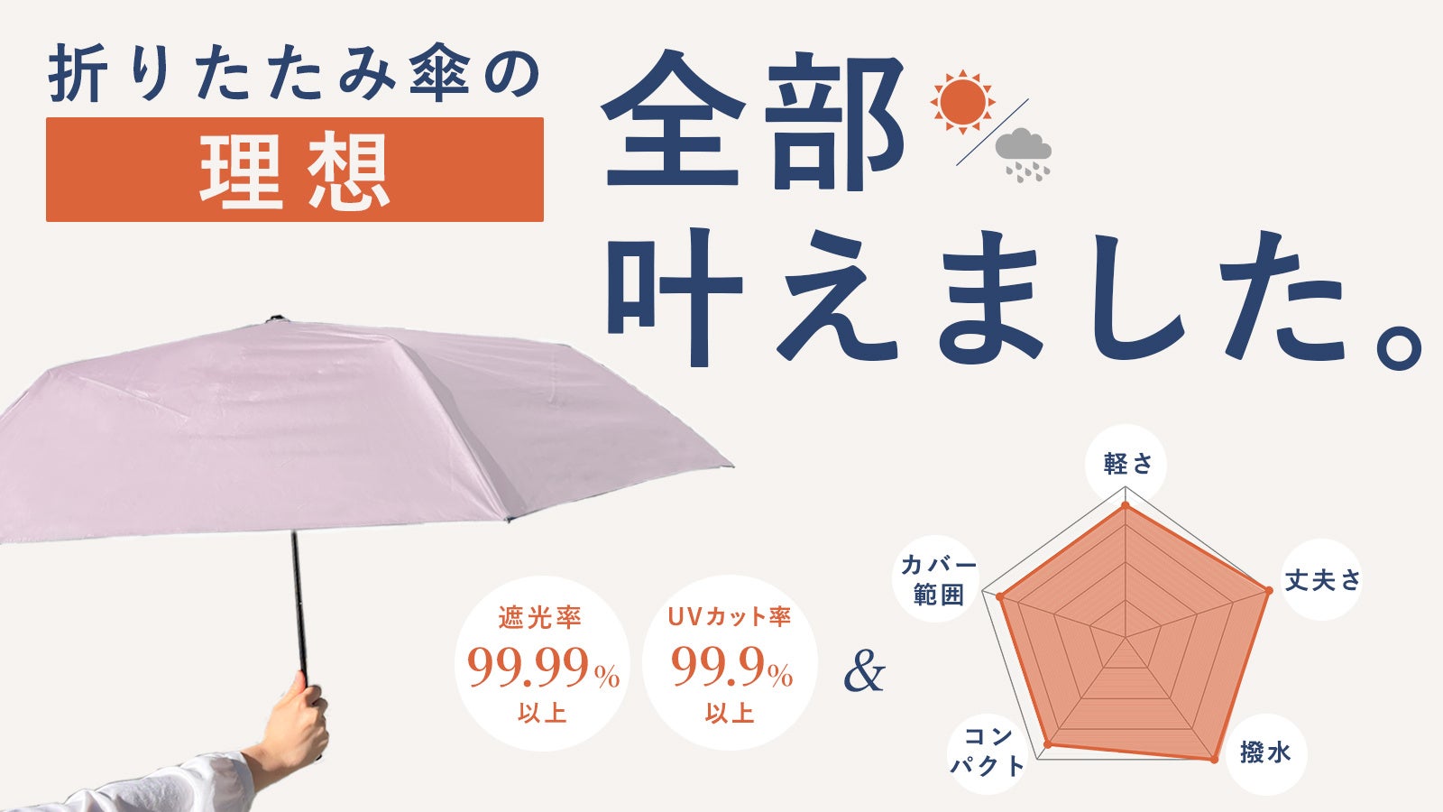 【親骨55㎝サイズで驚異の150g!】遮光率UVカット率99.9%以上の晴雨兼用折りたたみ傘クラウドファンディングにてデビュー!
