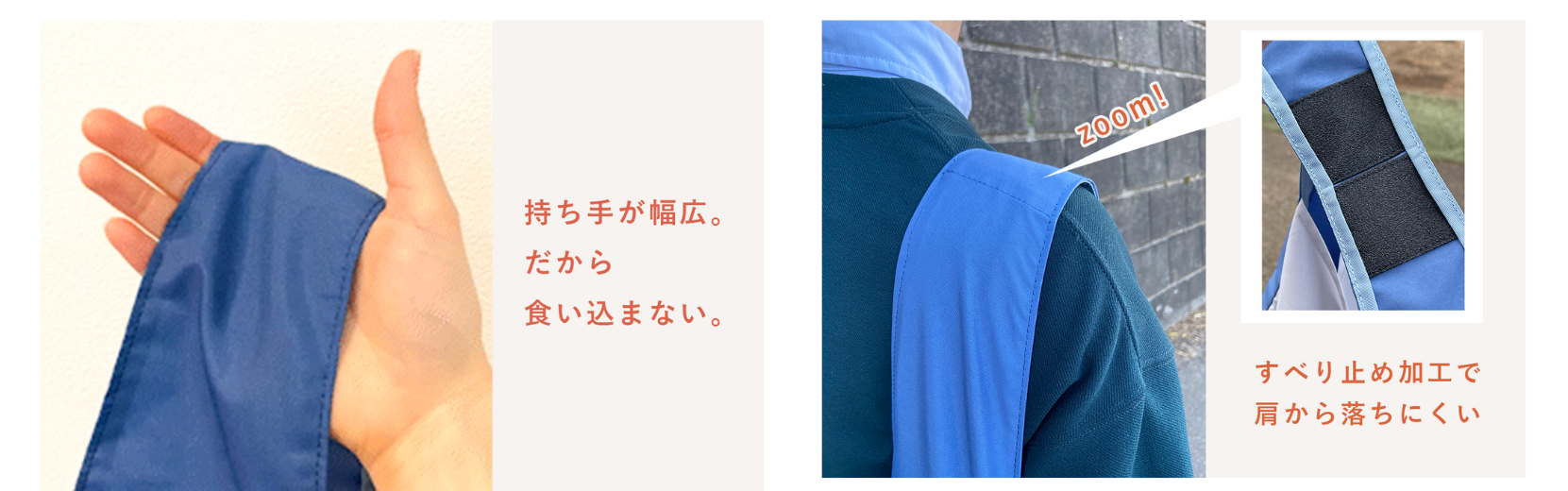 さらに、周りをぬらさない強撥水オリジナルケース・持ちやすく、コンパクトに収納できる持ち手と、とことん持ち歩きやすさにこだわりました。